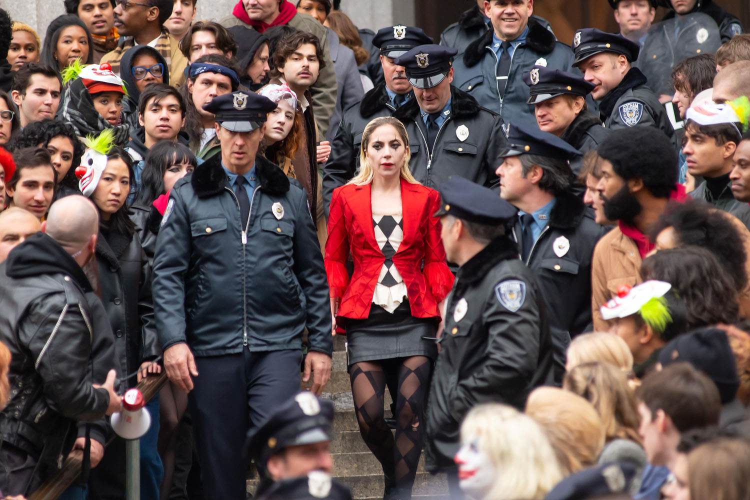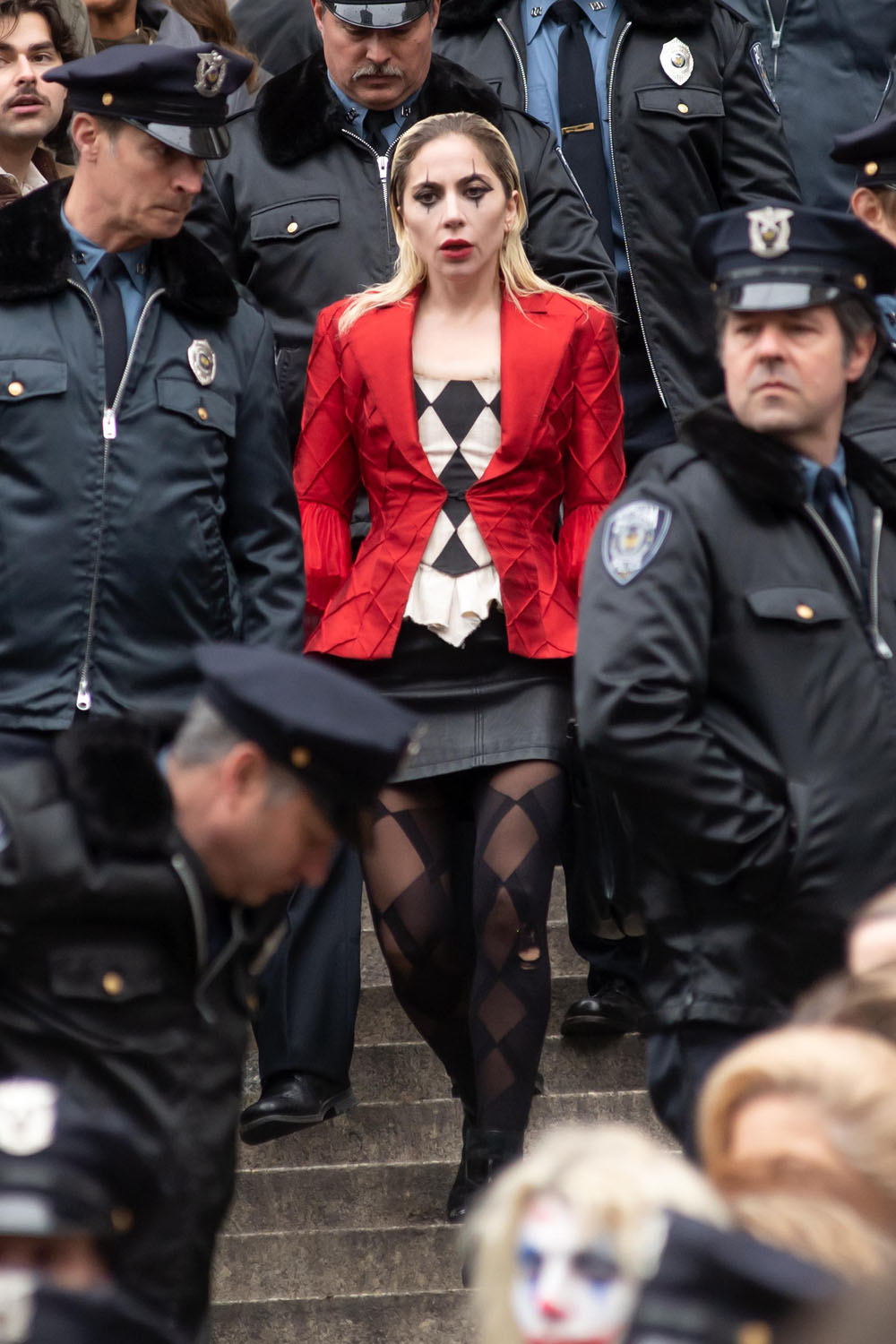 Back in February we got a context-free look at Lady Gaga as Harley Quinn in Joker: Folie à Deux. That photo didn’t show anything of Gaga’s Harley look except smeared lipstick and an ecstatic expression, so it was hard to tell what her version of Harley will look like beyond “intense”.