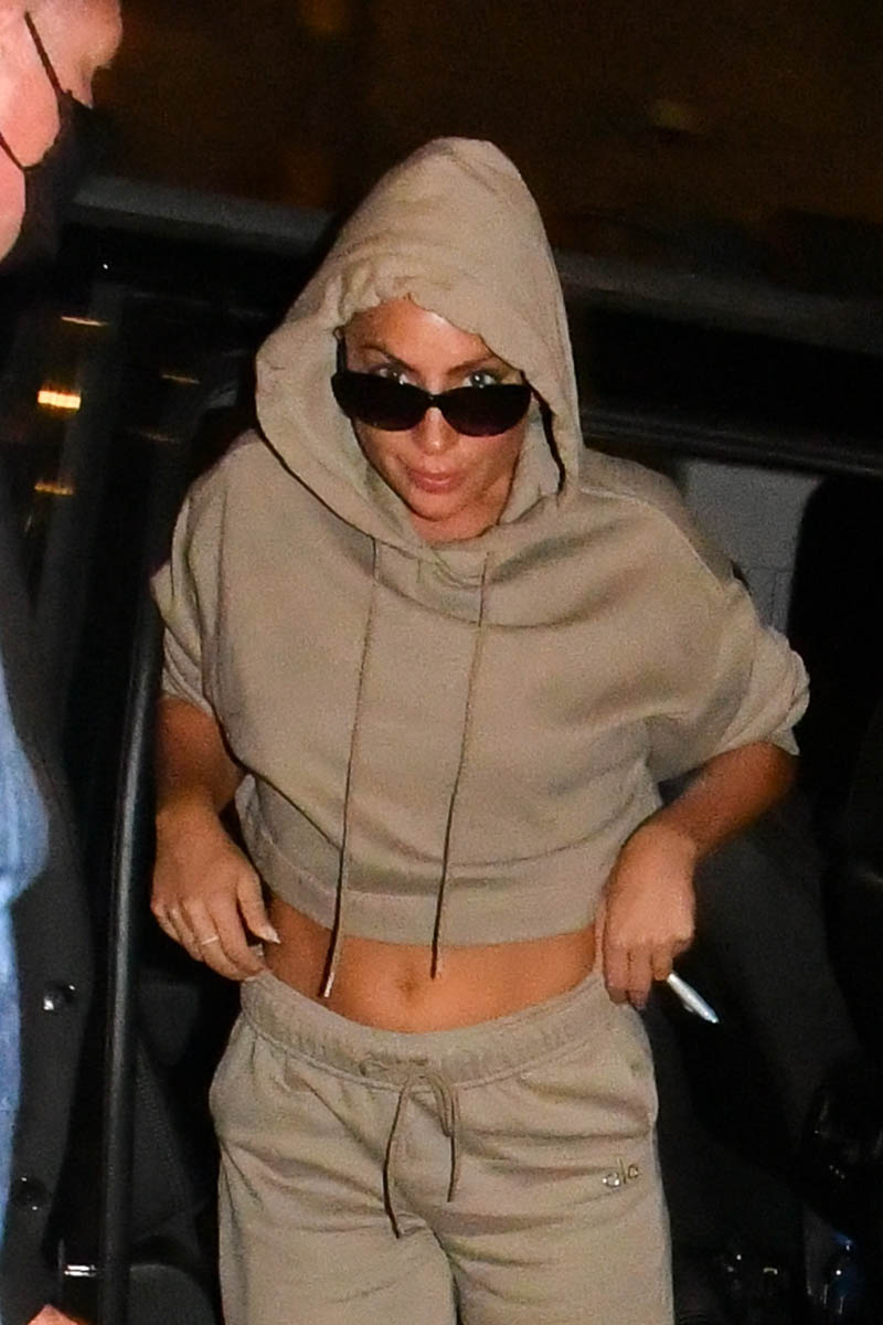 Not that Gaga doesn’t have her sneakers at the ready. Also attaching photos of Gaga in a track suit and sneakers after the show last night. Which makes sense. Following a two hour performance, Gaga chose comfort.