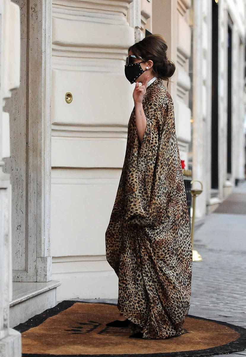 Earlier today I was planning on posting these shots of Lady Gaga in Rome wearing a really great dress (yesterday before the news), in town to work on her next film, but then decided I would save them for tomorrow’s Outfit of the Week. But then… I heard about her dog walker getting shot and her dogs getting abducted.