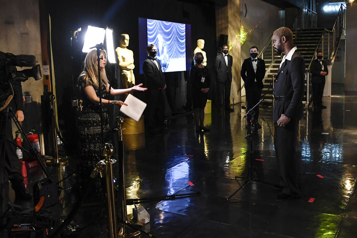 Those military breast pockets. The uniform display of the collar. I would be absolutely fine believing that this whole outfit was conceived with an eye toward this pose, this shot, this night. It’s an outfit worthy of LaKeith Stanfield, who’s less underappreciated than he is under-comprehended, and it makes me really quite delighted, and on one of the weirdest nights of all Oscars ever, this is an unqualified joy.