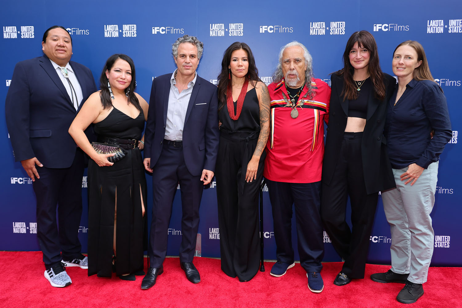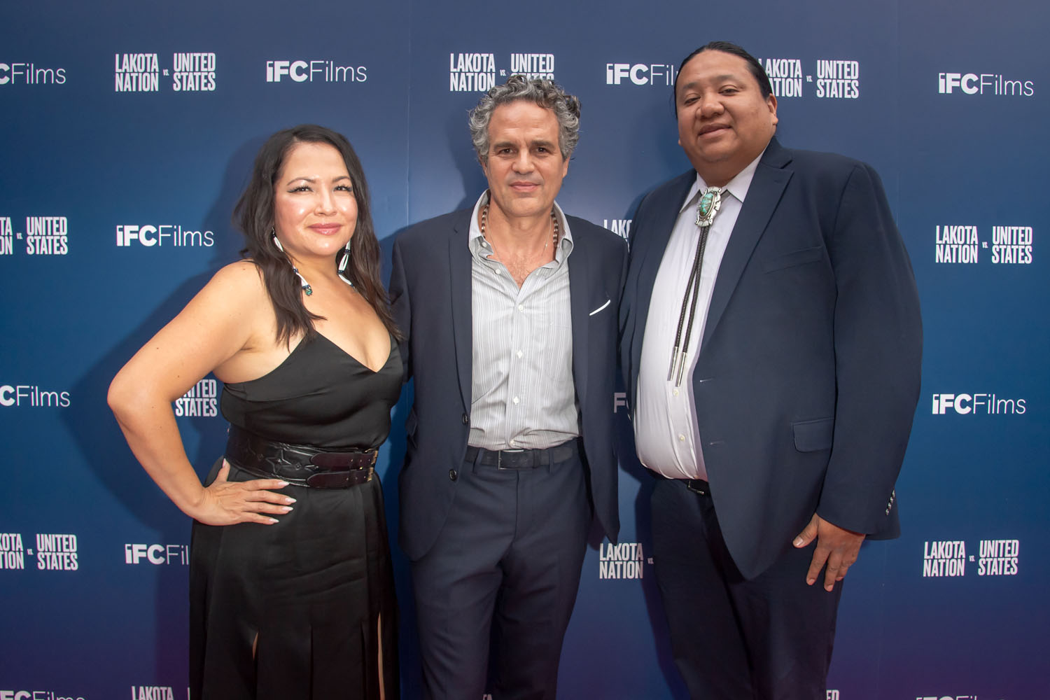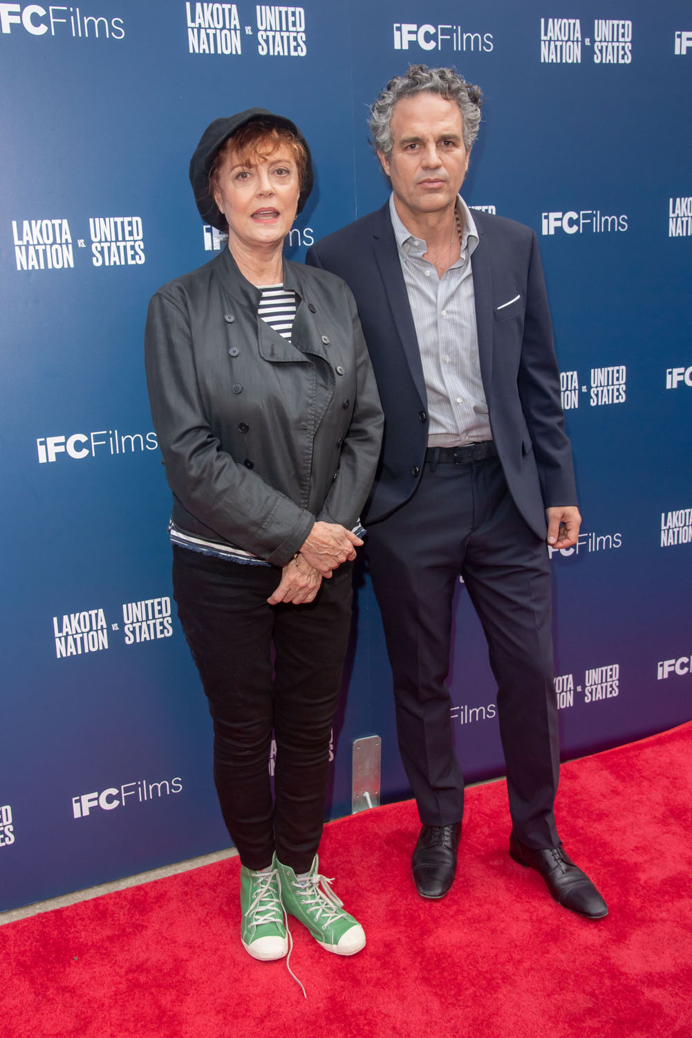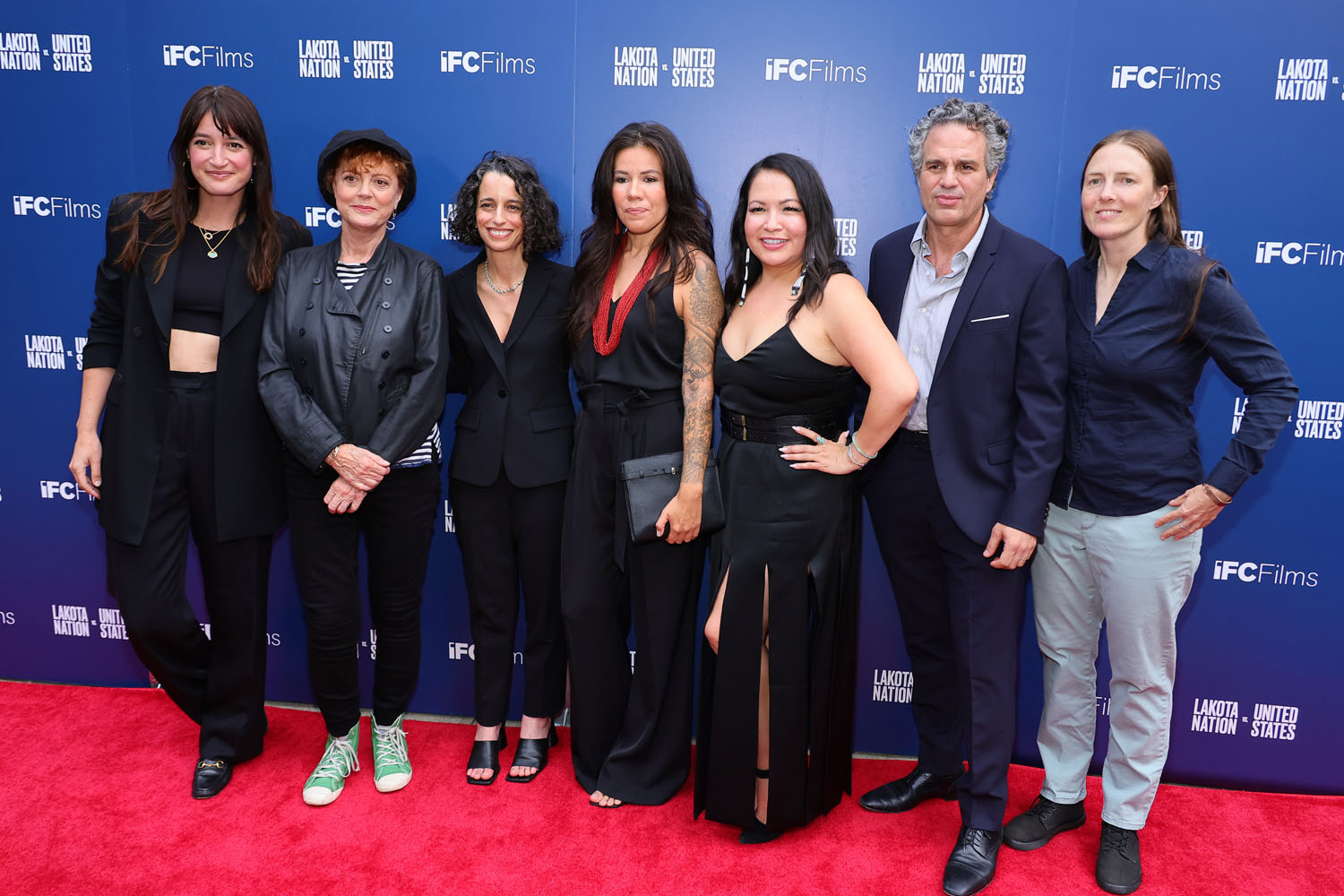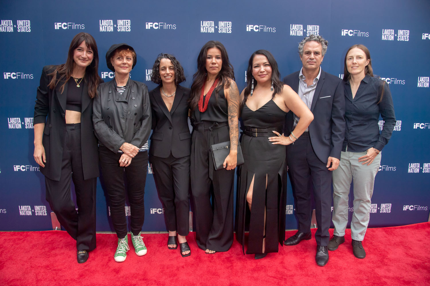 Here are producers Mark Ruffalo and Sarah Eagle Heart, along with co-director Laura Tomaselli and Susan Sarandon, at the Lakota Nation premiere yesterday.