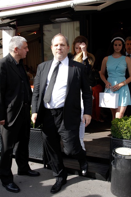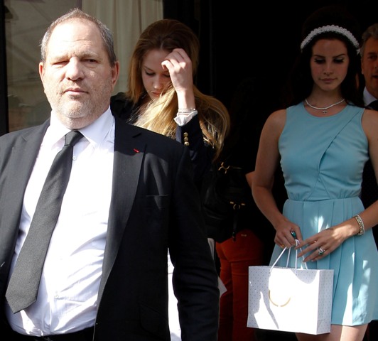 She was spotted in Paris with super producer Harvey Weinstein (they are both there for fashion week). He has a radar for ingénues, no? Is Harvey tired of Blake? Because he seemed super friendly with Lana. So Lana and Harvey go for a heavily-papped lunch where she posed all pouty and demure in an ill-fitting blue dress and he pawed her in front of the cameras.
