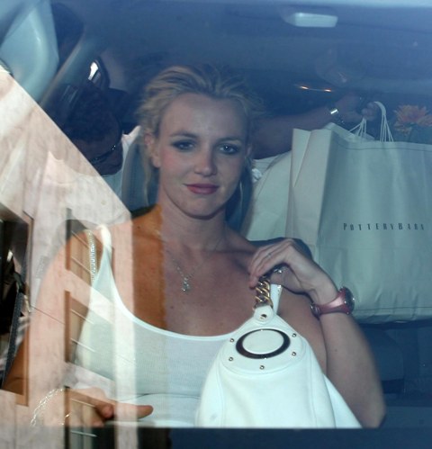 Here she is yesterday leaving Pottery Barn. Ignore the turned out feet and the heels. Ignore the denim capris (ew!), focus instead on the confidence of her stride, the body language, her pretty face re-emerging…