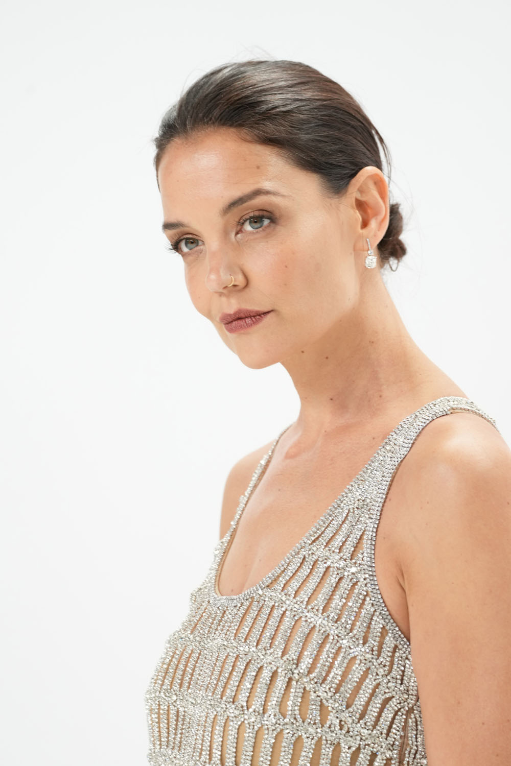 Which is the opposite of what Katie Holmes was going for. This silver flapper dress is fine. It’s Jonathan Simkhai with whom she attended. And while I’m not saying this isn’t pretty, because it is very pretty, it’s just not all that exciting, considering the event and how much more style landscape was available to explore.