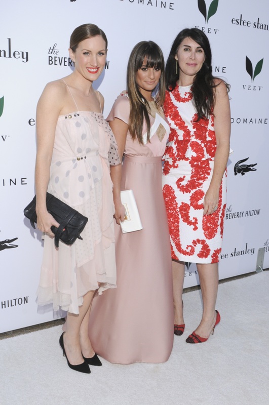 Lea Michele is a short girl. And that’s a LONG skirt. And it totally overwhelms her. It’s made worse by the fact that that fringe also truncates the visual line. Nothing is being lengthened. And with her tan and the pale lips, it’s also all one colour, seemingly, from head to toe.