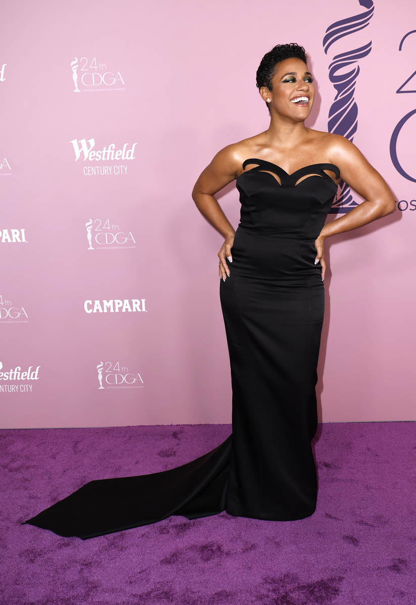 Ariana DeBose, the leading lady, was at the Costume Designers Guild Awards last night. With a hairstyle that’s different from the one we’ve been seeing on her the last few weeks during award season. My ma would say this is a good feng shui hairstyle – forehead exposed, facing the world, no distractions in the way, no stray pieces to block the luck. Luck has an open path to enter. We’ll see if that works out on Oscar night.