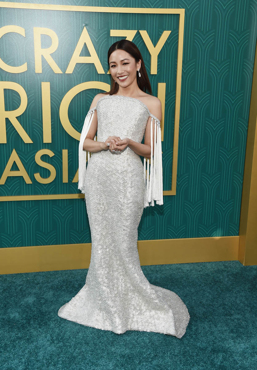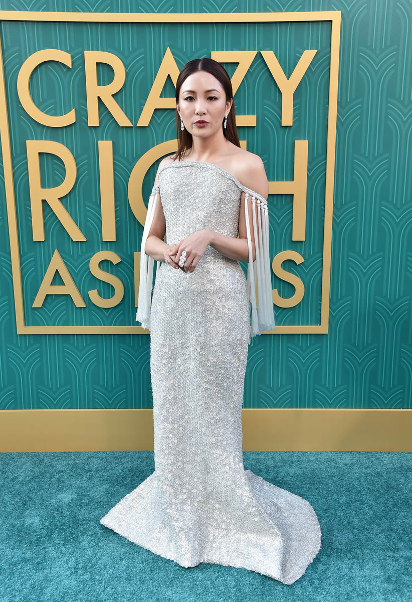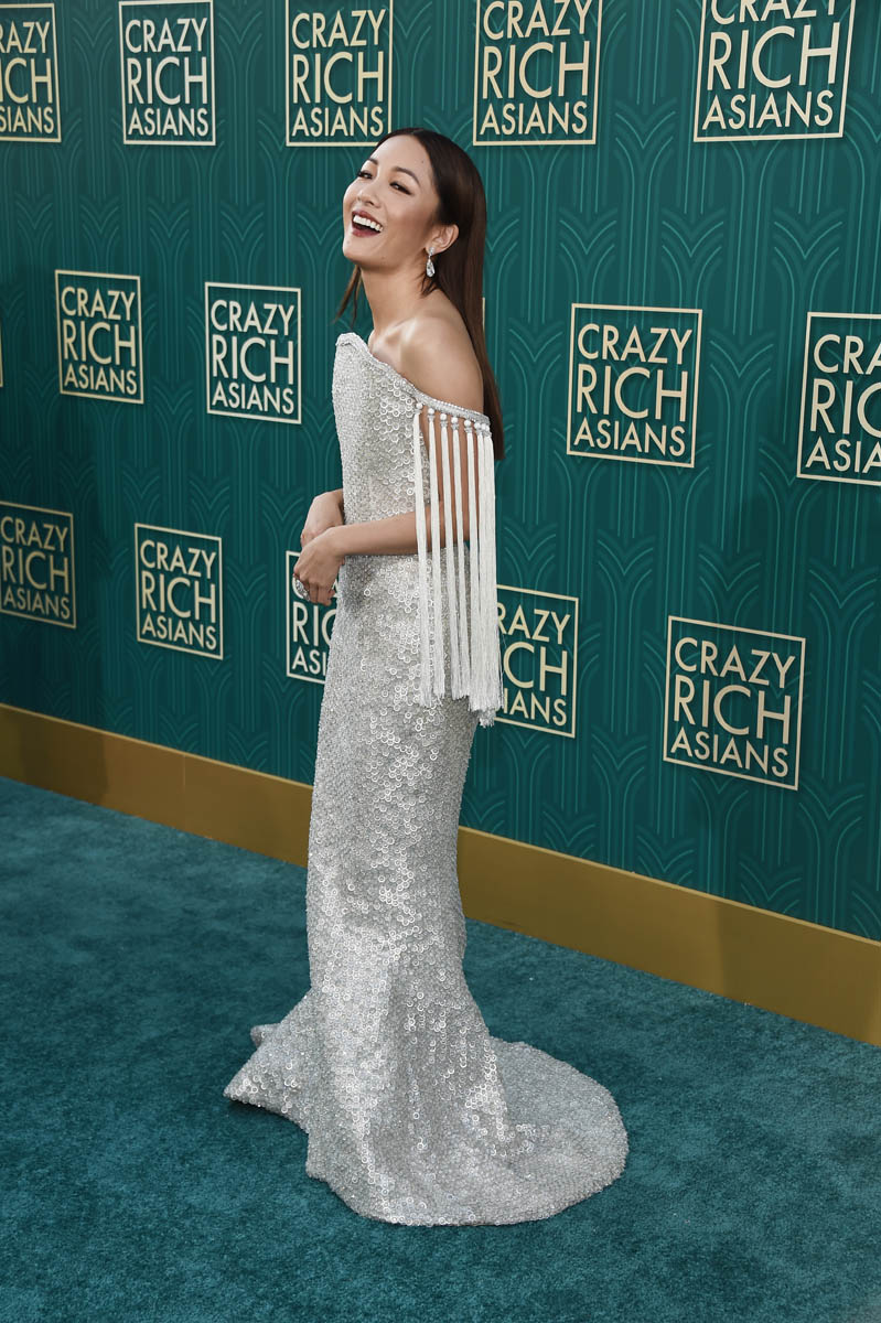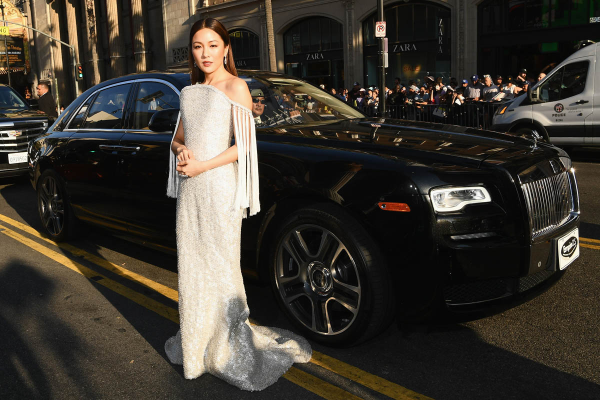 Crazy Rich Asians is Constance Wu’s first role in a studio film. First! And she’s the leading lady. She is The Star. This is her character’s story. Which means that at last night’s premiere, she was the Julia Roberts of the event. I’m making a point with that comparison. The point is that the hope is that, one day, the comparison will be that someone else will be the Constance Wu of the event. If I’m emotional thinking about it, I can only imagine how she must have felt, especially since, as she has said, it has been her privilege and “obligation” to advocate for representation and inclusion. And now here she is, on the red carpet at the historic Chinese Theatre on Hollywood Boulevard, the star of a Hollywood major motion picture in a silver gown, an old Hollywood movie star’s gown, right?