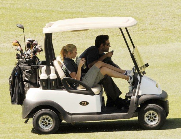 Us Weekly broke the story a few months ago, the two denied it initially, but last month both ended their relationships and, obviously, feel comfortable enough now to publicly flaunt their love – seen yesterday at a golf course enjoying a full round.
