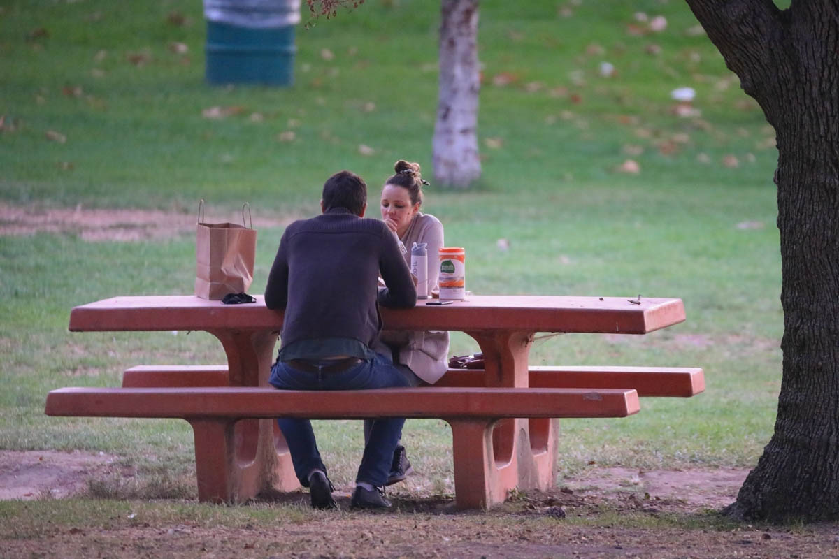 Next couples update: Rachel McAdams and Jamie Linden are expecting their second child and took advantage of a child-free night to have dinner in the park. Excellent COVID activity. Pick up takeout, find a park bench, enjoy the outdoors…if you’re the kind of person who can eat outdoors. I cannot eat outdoors, I find it very uncomfortable, not even on a patio, so this is not an option for me.