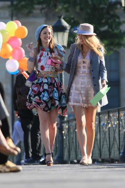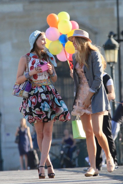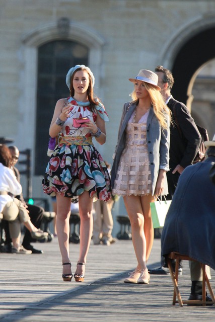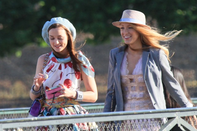 Here are Leighton Meester and Blake Lively shooting new scenes today with several outfit changes and a few cute boys and never a budget. It’s the perfect summer. And a rather productive one for the show’s two leads.