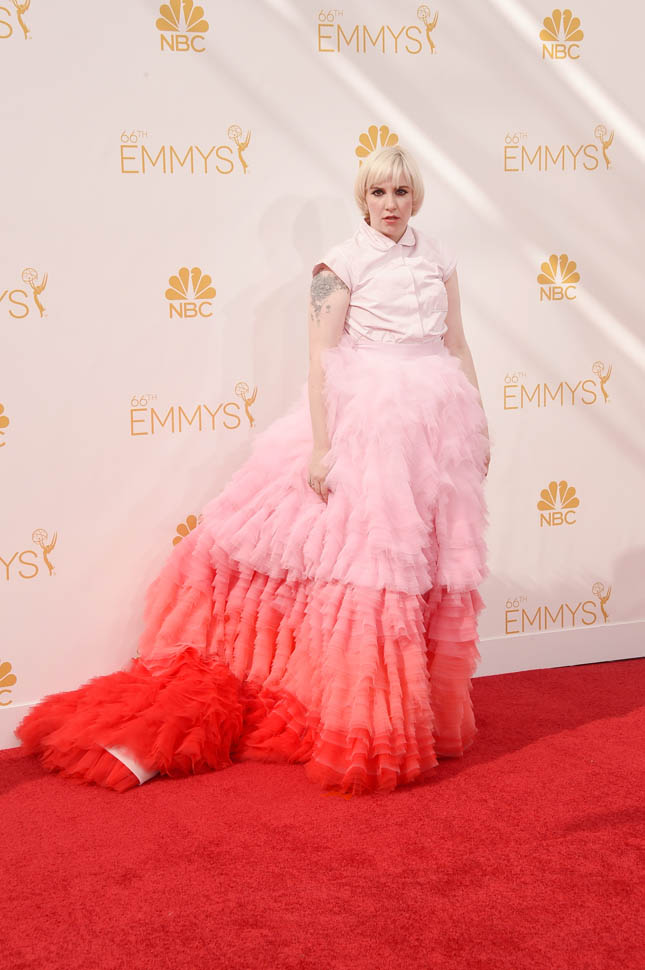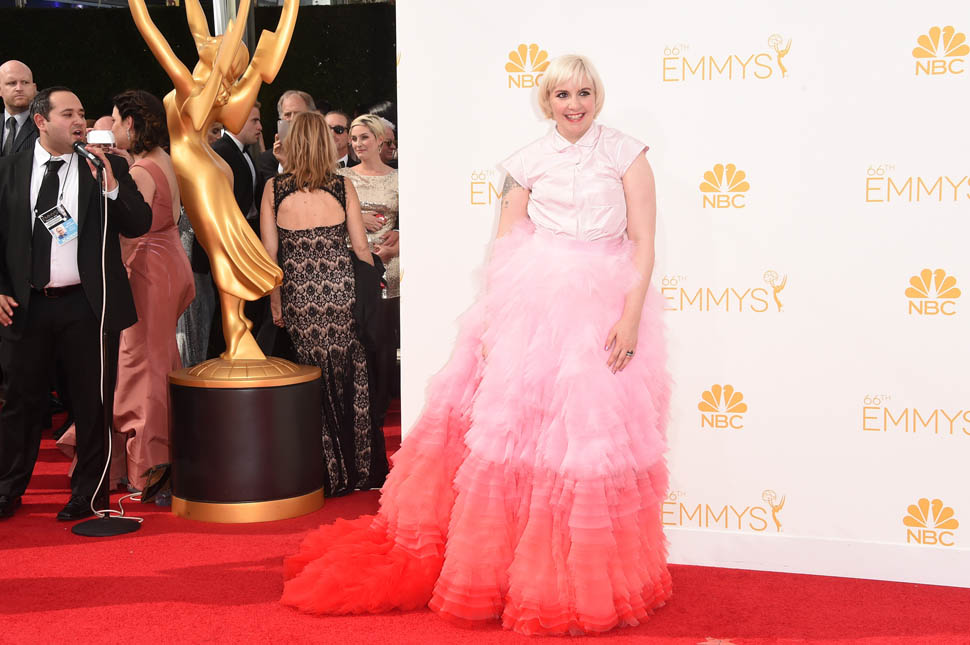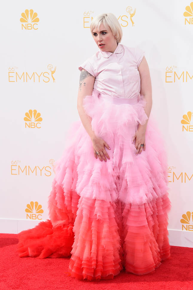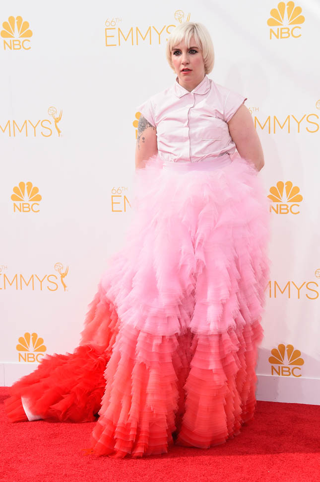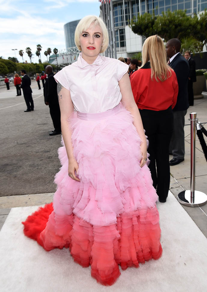 Lena Dunham looked awesome. There are all kinds of caveats and I could list them, but they’re personal. I don’t personally like white shirts and I don’t personally love pink. Not the point.