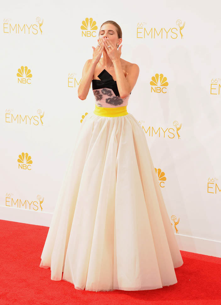 But this is the thing about Dunham: she still engenders love and hate. By contrast, I have determined that Allison Williams, for all the “hate” she gets, is actually just getting hate for being boring. Like if she’s going to be so reviled for being uptight or whatever, it would be nice if she played the part. She sort of does – the tension in her shoulders is allll high school – but really that Giambattisti Valli dress was boring, but not cutesy vomit boring. Regular boring. Just average. Flowered bodice-yellow-belt. I don’t even hate it. If I did, at least I could hate it, you know?
