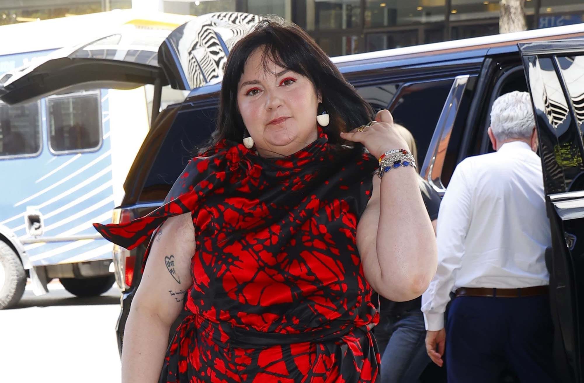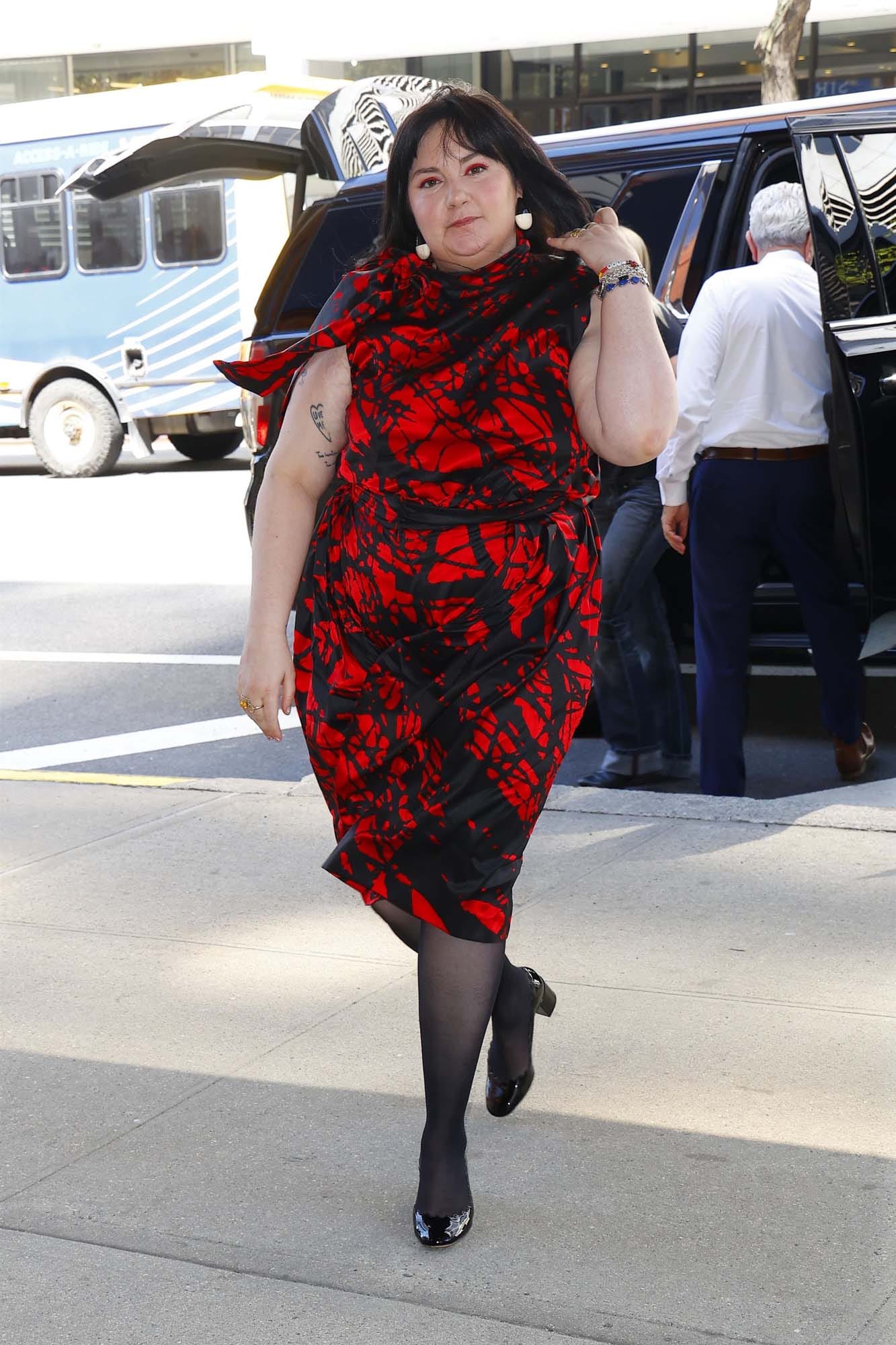 Lena Dunham arrives at The Drew Barrymore Show in NYC, April 14, 2026