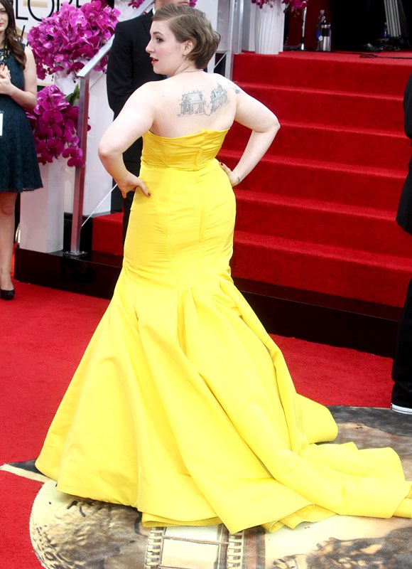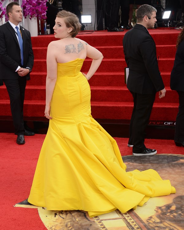 I loved Lena Dunham’s dress at the Emmys – click here for a refresher – so much that I called it my Best Dressed on The Social the following day. And this is why I don’t understand what happened here.