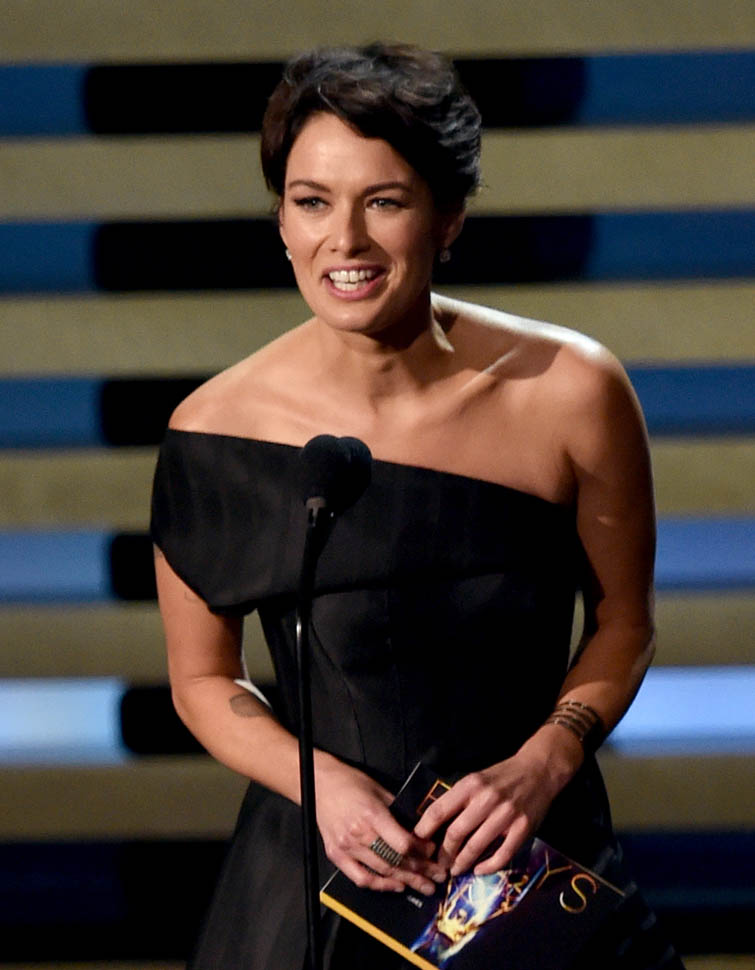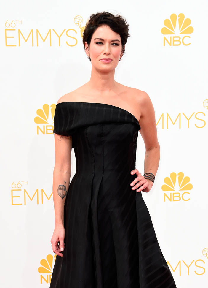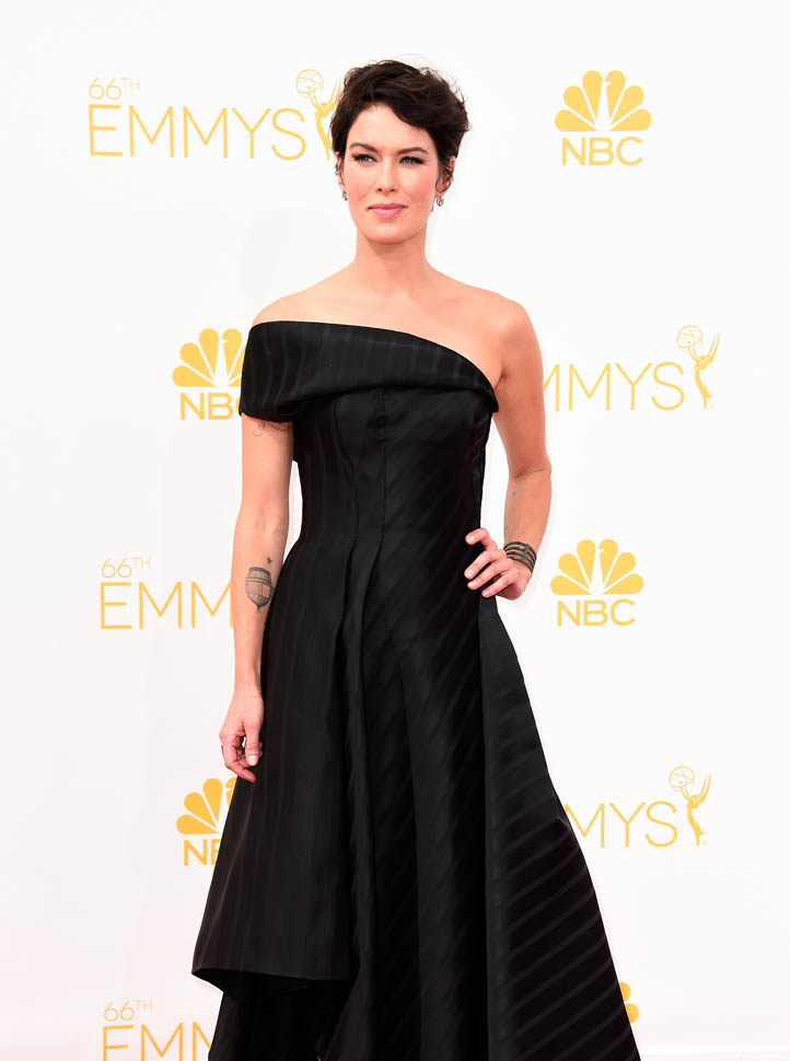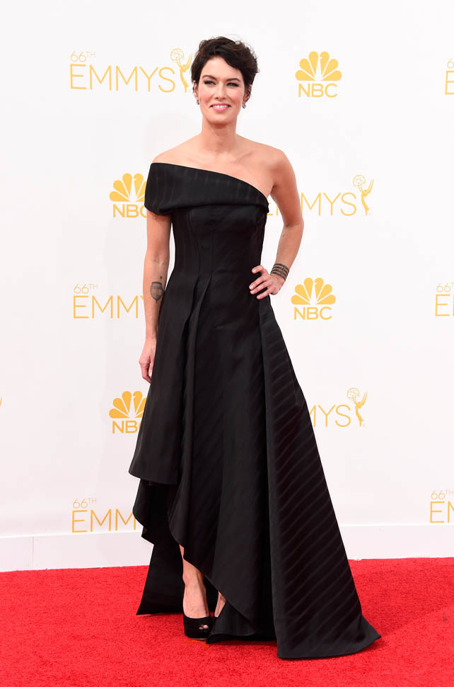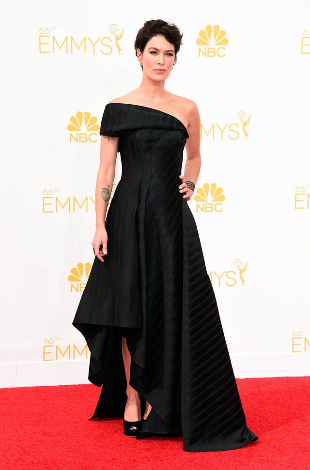 What a great black dress. The one shoulder on the same side as the hitched hem. The pleats on the same hip. And it’s ribbed. Perfect combination of modern and classic for a ball gown, right? That makes it a design achievement then, right? Because here’s a woman with an edge. And she found a dress that respects the edge without having to go all the way outside the box. Well done on the accessories too. Just a black cuff and some earrings, all business and spare. I like to imagine that that’s how Lena Headey approaches fashion – knows exactly what she wants, isn’t fussy, doesn’t second-guess, and just wants to get to the bar.