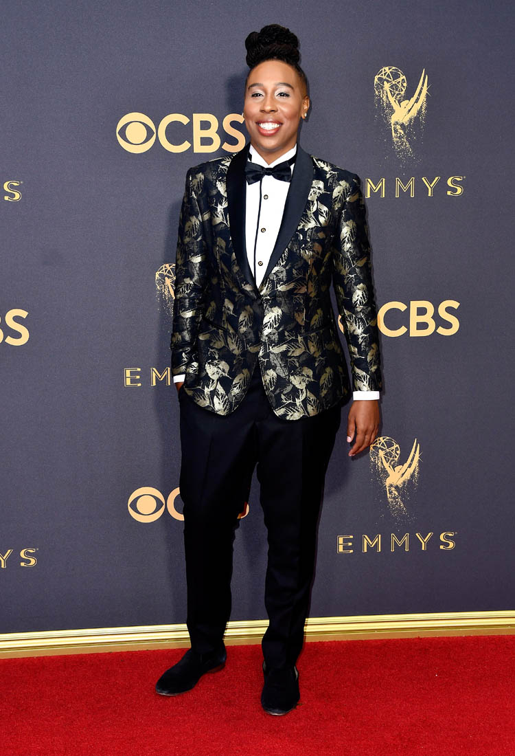 Speaking of showing her work, can you LOOK at this outfit. What I love about it is that while it’s perfectly Lena Waithe, it is exactly as formal as the night requires. Look at the piping on the shirt and the makeup and the updo. You can look just like yourself and still look like it’s the biggest night of your life so far.