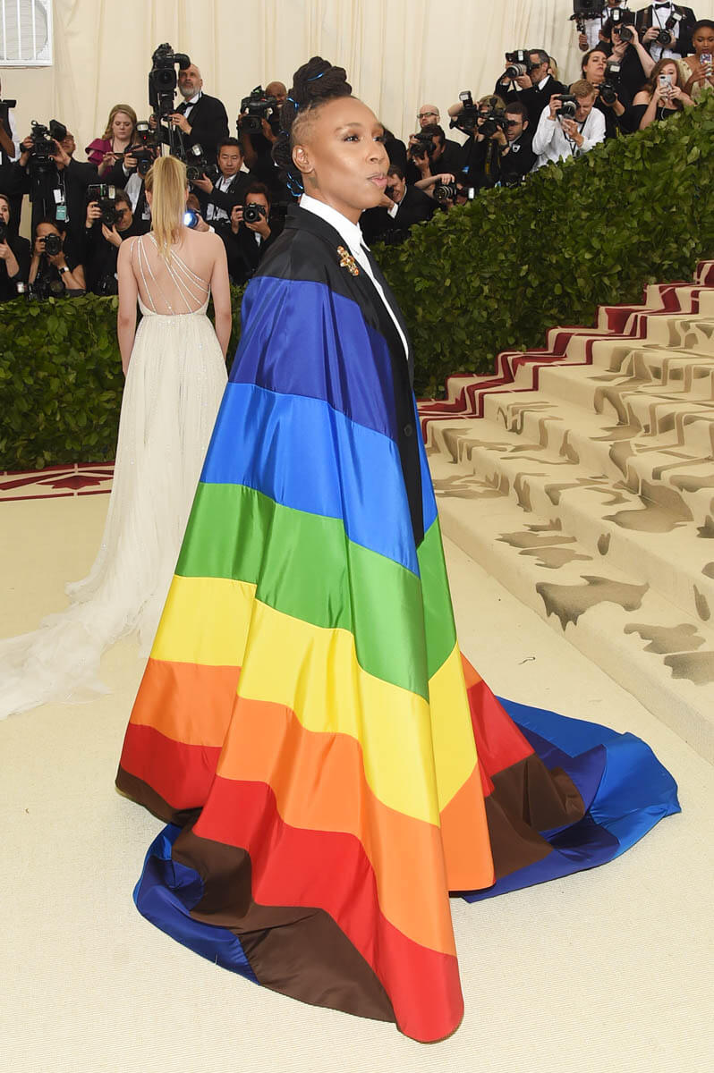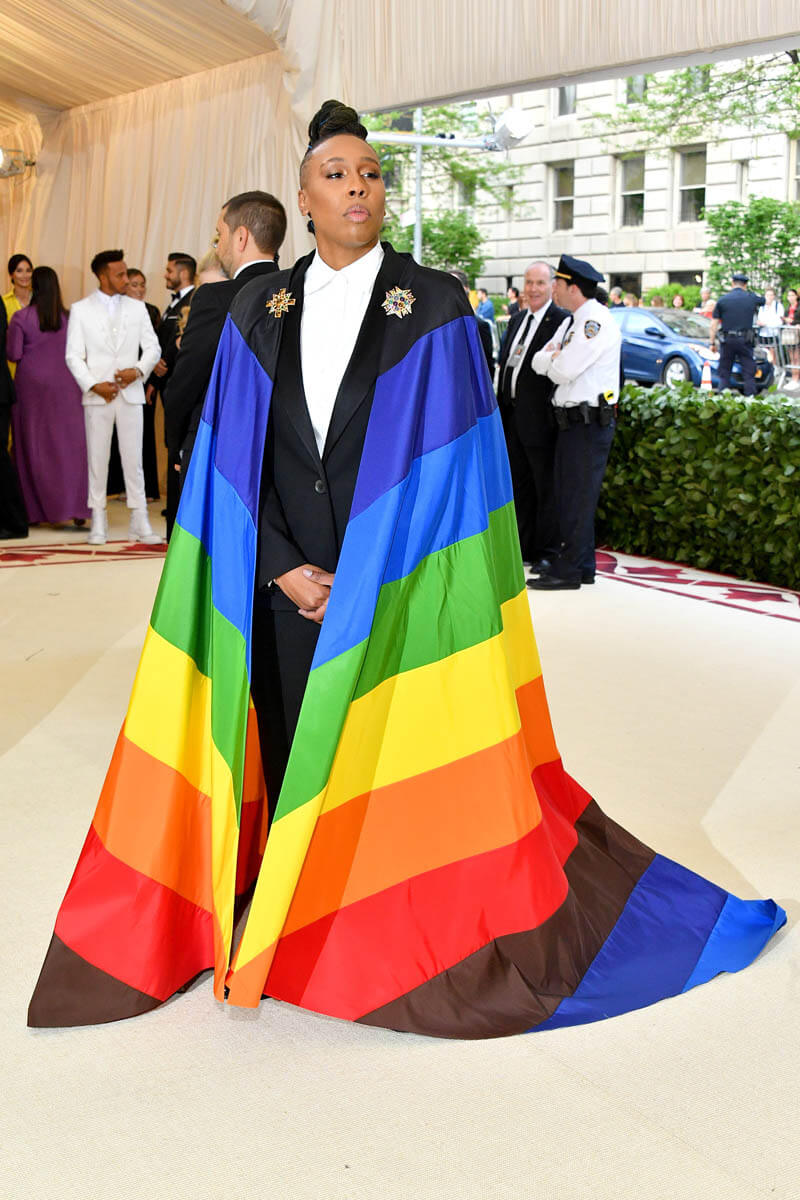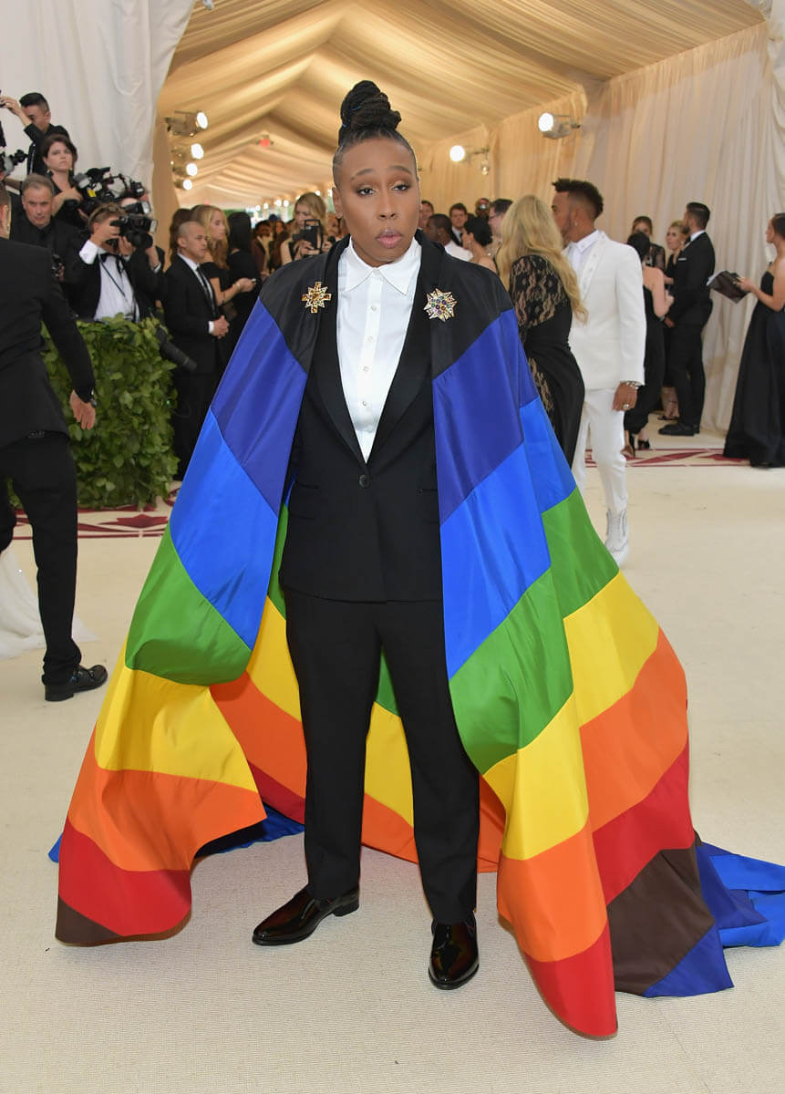 Lena Waith’s Met Gala appearance proves that you can engage in social commentary without sacrificing fashion. Lena looks INCREDIBLE. The suit fits impeccably and that cape falls in exactly the right spots. Her hair and makeup are ridiculous, in the best way. Lena Waithe took us to church looking like a lesbian superhero draped in a pride flag. She DID THAT. In the above speech, Lena referred to herself as a “little queer black girl from the South Side of Chicago.” What an amazing origin story for our hero to now be that beacon of hope for little queer girls everywhere.