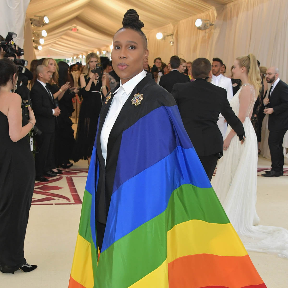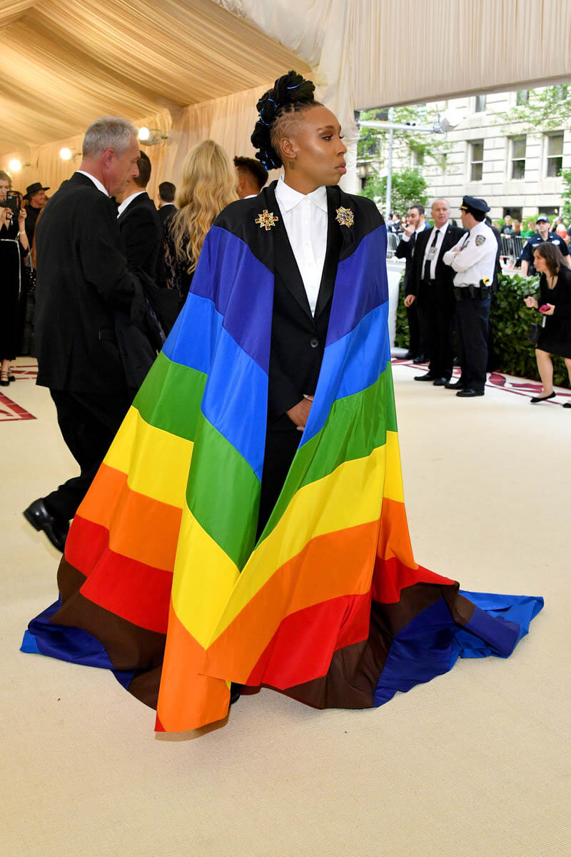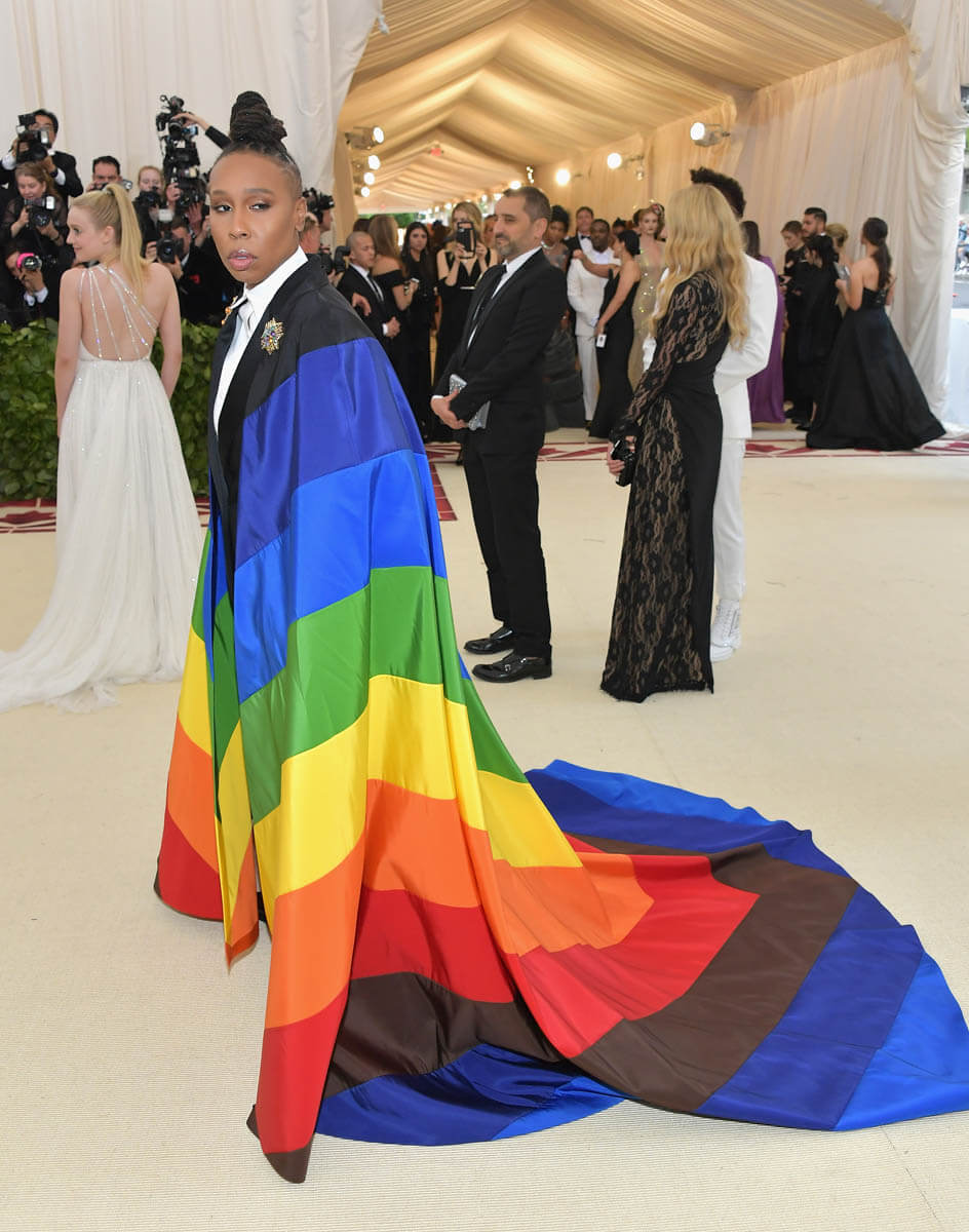 At this year’s Met, when the theme was "Heavenly Bodies: Fashion and the Catholic Imagination," Lena’s cape was not imaginary. It was real. It was loud. It was PROUD. It said, “I see each and every one of you” to the LGBTQ kids sitting in Catholic school wondering if their lives are a sin. We know that the Catholic church historically does not have a good track record with acceptance when it comes to the LGBTQ community, especially before Pope Francis. They’re still holding on to their bigoted bullsh-t. I went to Catholic school. I KNOW. On a night where most people wore variations of halos, crosses and other Christian-centric religious accessories, Lena Waithe reminded the world that it would be a lot less beautiful if she weren’t in it. She said, hey, while you’re all celebrating this religion that has oppressed my people for centuries, remember that we do exist. That was Lena Waithe’s statement.