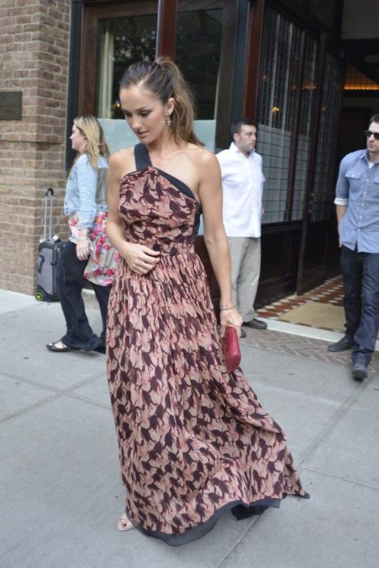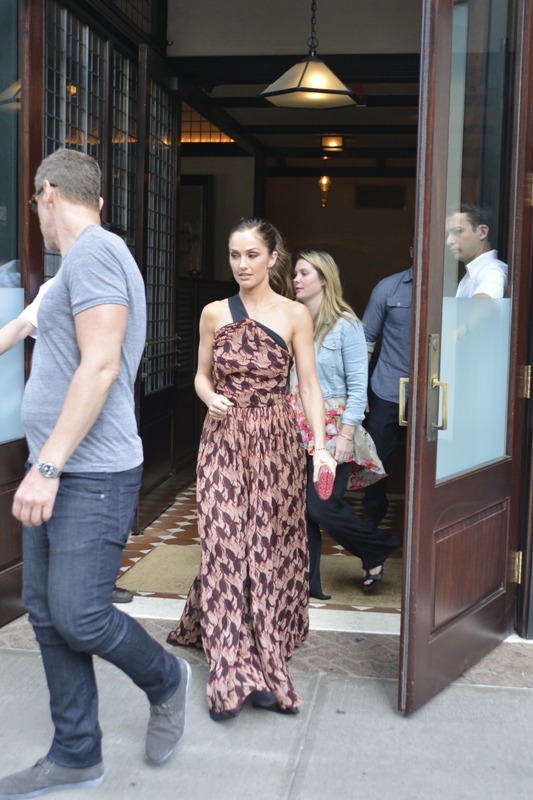 Also in New York for the premiere – Minka Kelly who plays Jacqueline Kennedy in the film. Check her out leaving her hotel on the way to the carpet…and in the background there, purposefully staggering his exit, her boyfriend Chris Evans. I like them together. So much. Why am I alone in this?