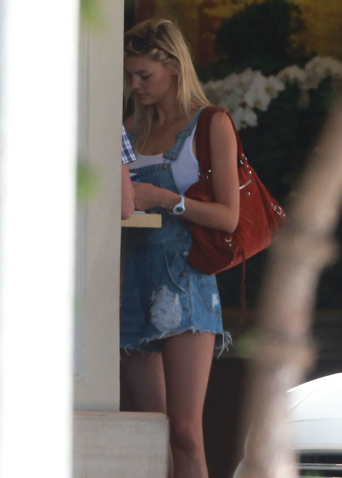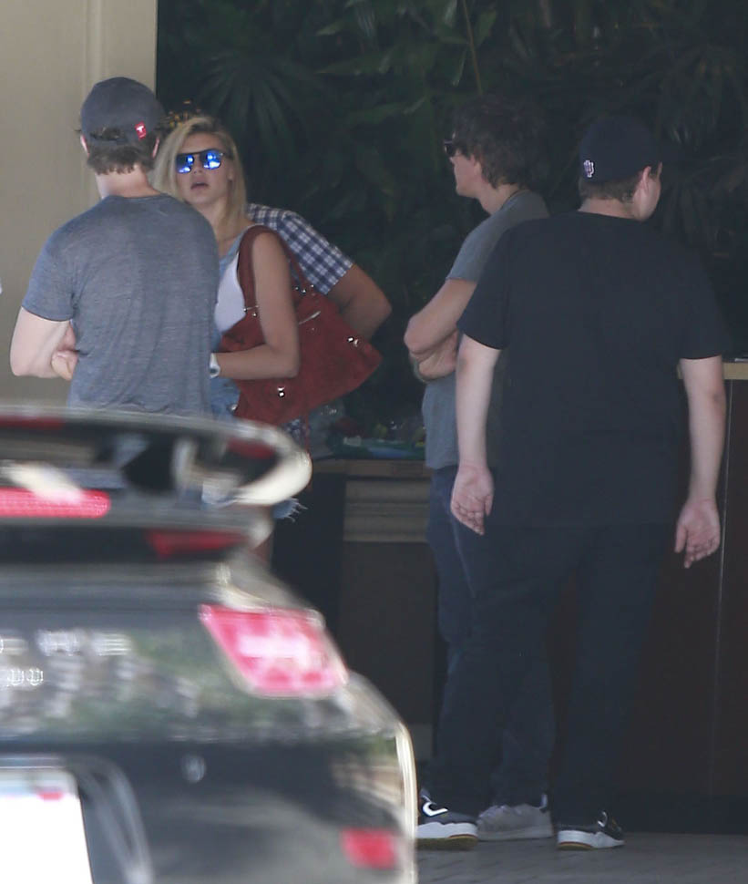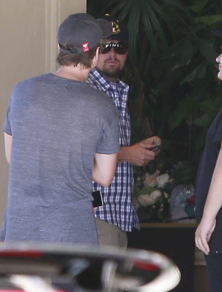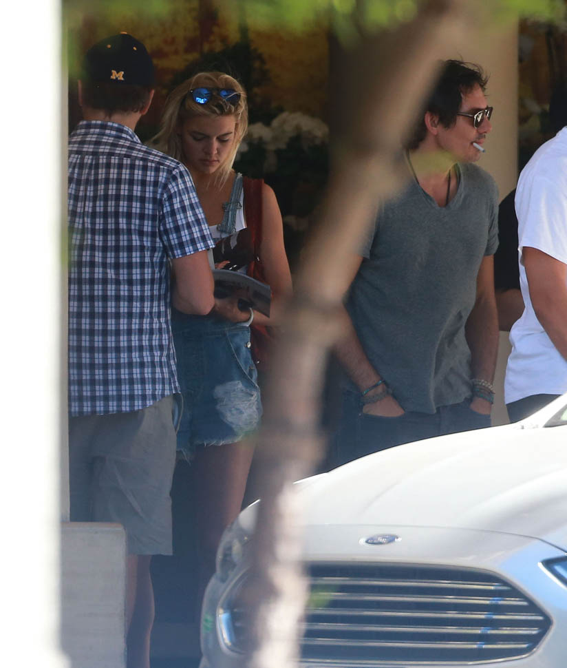 On Sunday, Leo and Kelly were out again with his other bonafide, Lukas Haas. She’s in the same outfit as the day before, an example some idiot will use in a few days to point out how “cool” she is that she’s not the kind of girl who needs to be in a different outfit every day when she’s eating burgers and chilling with the guys which is what makes her so awesome and the ultimate girl to finally get the hardest guy. OK.