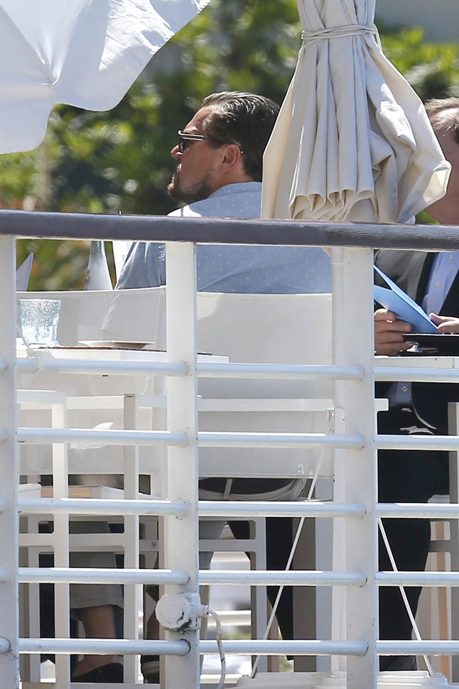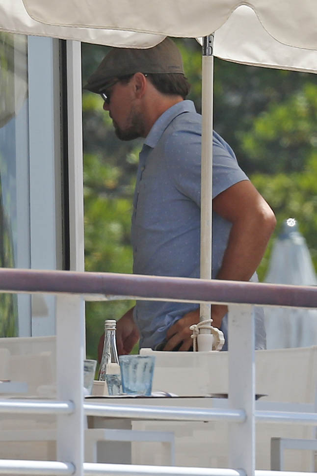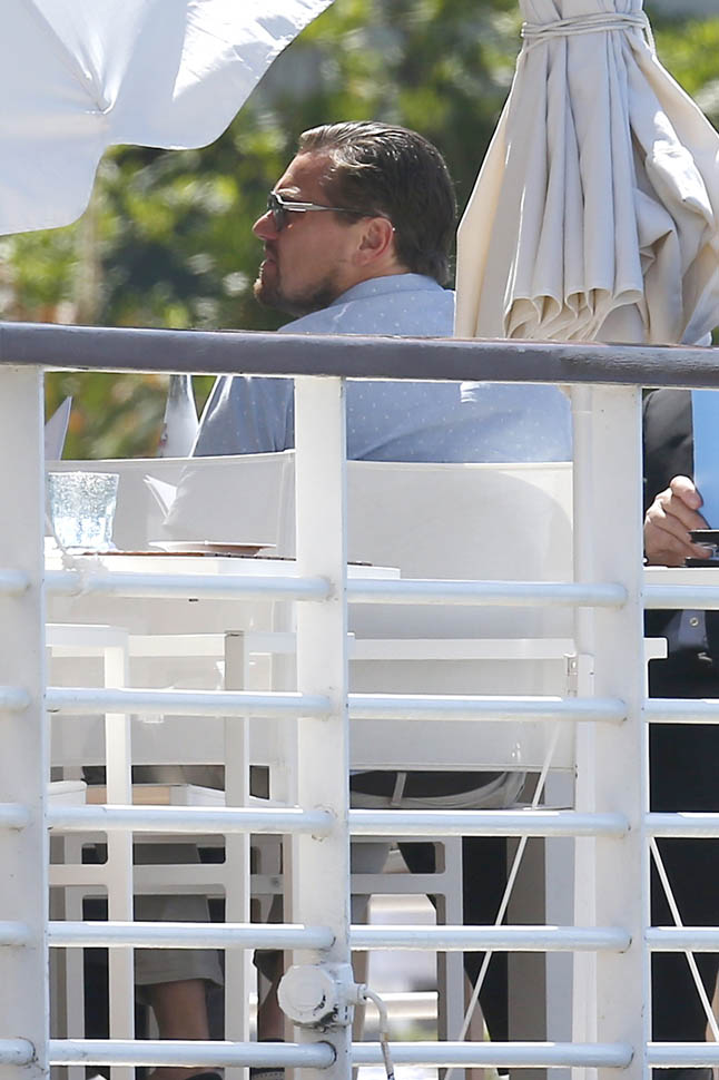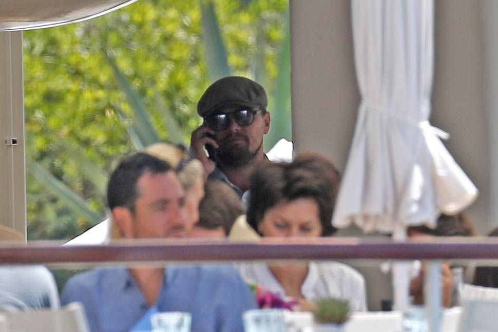 Attached- Leonardo DiCaprio having lunch at Eden Roc Hotel today.