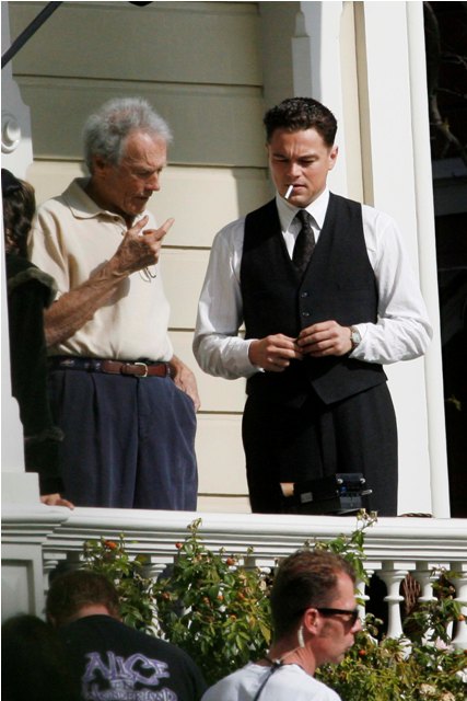 Here’s Leo yesterday on the set of J Edgar with darker hair, taking some direction from Clint Eastwood, and certainly slimmer than we usually see him when he’s not working but… it’s not like it was, no. Google pictures from before. You don’t even have to go as far back as Titanic. I mean even from The Aviator to now, it’s not the same.