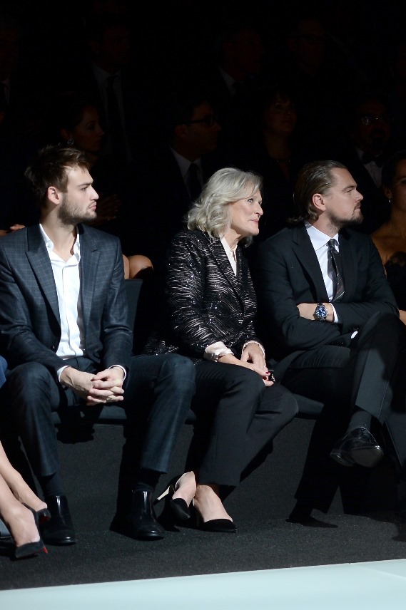I was just saying yesterday that Leo wouldn’t leave Martin Scorsese hanging. But then again, it’s not like going to a fashion show isn’t Leo’s jam. Leonardo DiCaprio LIVES at a fashion show. That’s where he orders his girlfriends from. How much do you love it that he’s sitting next to Glenn Close with his arms crossed. She didn’t meet the age minimum, ok?