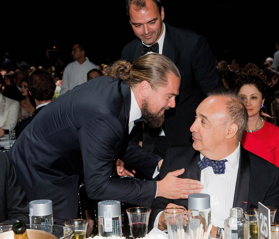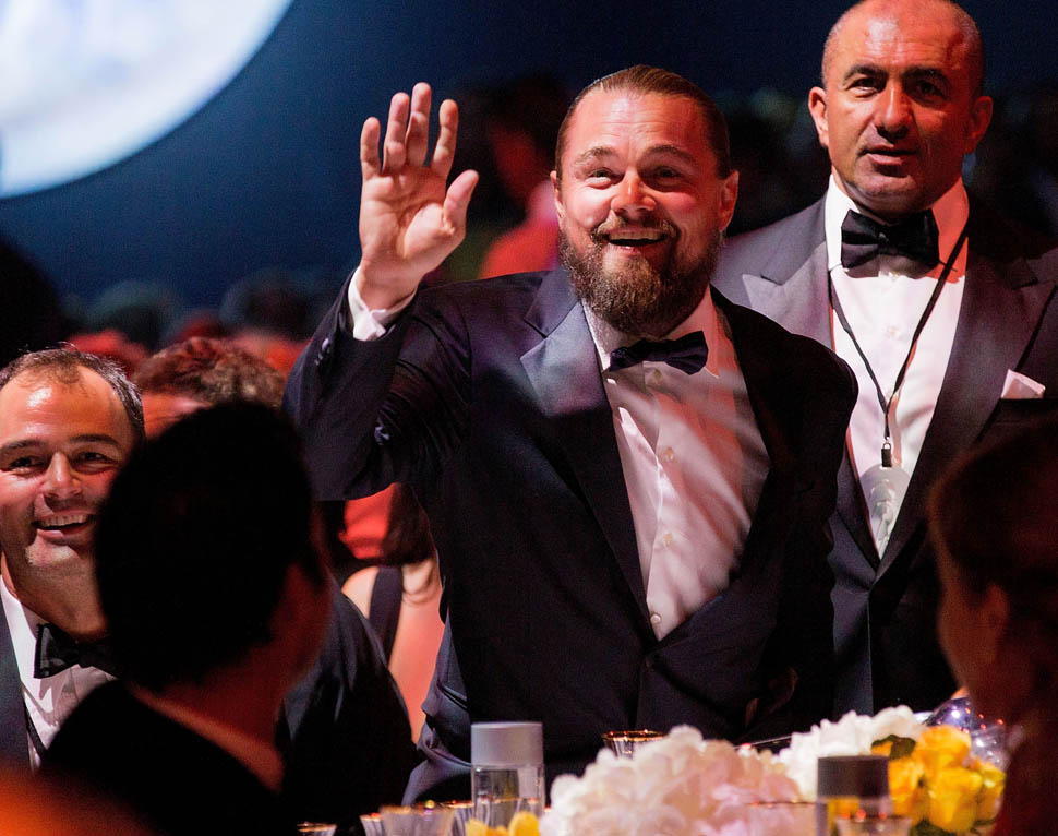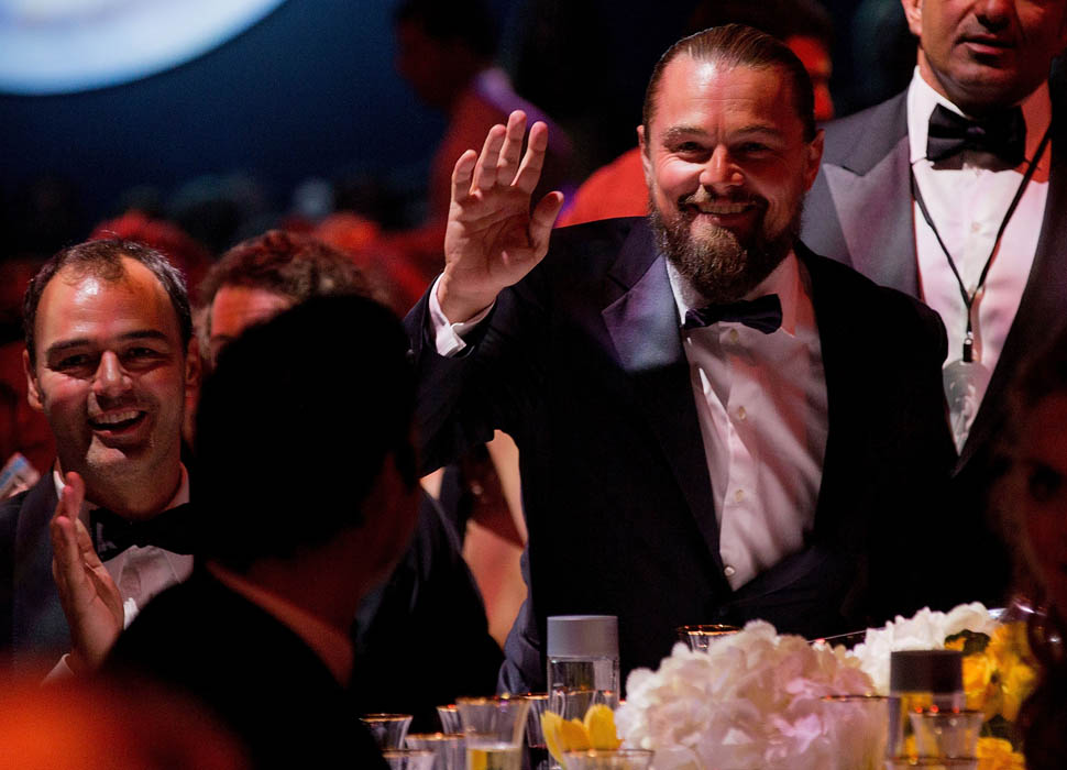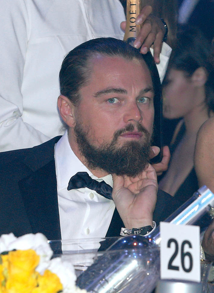 Leo donated a Banksy to be auctioned off at the event. I love that he fancies himself an art person. I love how smug he is about his own perceived art eye. I bet you, somehow, he can relate that to why he appreciates models so much.