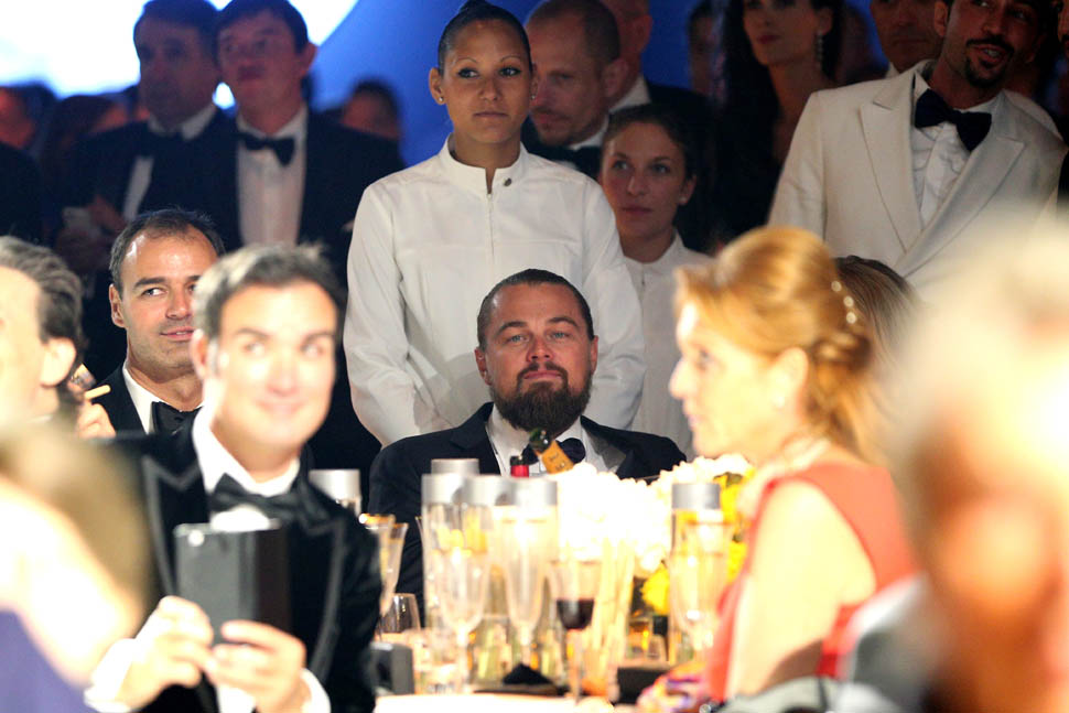 Like he would miss the amfAR gala, right? Because he's so charitable. And also because models. They're everywhere in Cannes but at the fundraisers they're especially important because the old rich dudes feel more generous when they're around. It's a big dick-off, all of them throwing their money around like it's attached to very large penises. Leonardo DiCaprio doesn't have that kind of money. He pulls pussy on celebrity, the very thing he claims to despise.