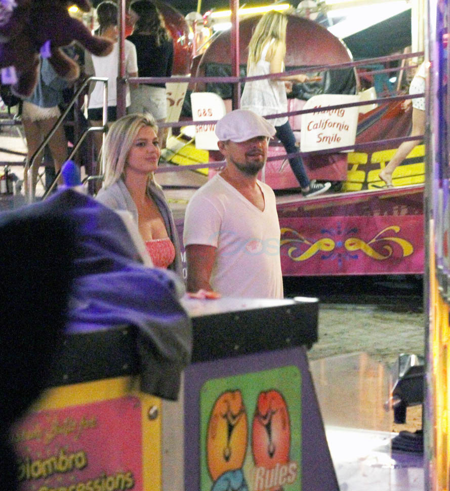 Leonardo DiCaprio and his current bonafide, Kelly Rohrbach, were papped at the Malibu fair on Sunday. He must not have known because otherwise, he’d be walking around with a trash bag over his head. Oscar the Grouch, but way less cute…now. According to the photographer who was there, Leo and Kelly were holding hands and kissing as they went on rides together. Question: if a French magazine published a bullsh-t story about how Leo didn’t want Kelly to have his baby…would he sue them? Or does he reserve his gossip lawsuits just for Rihanna?