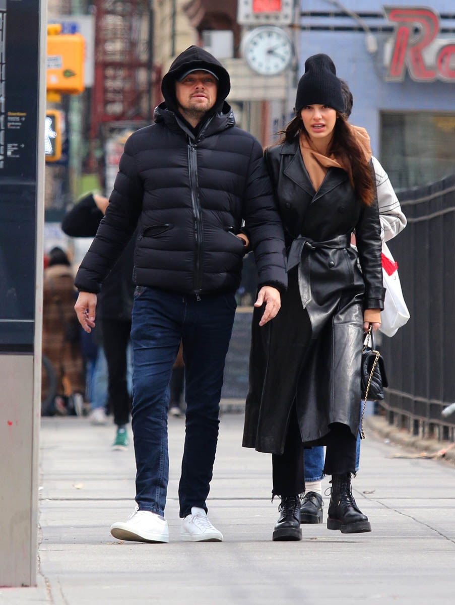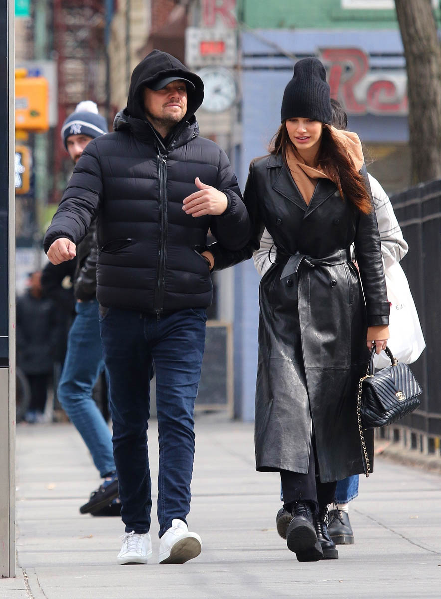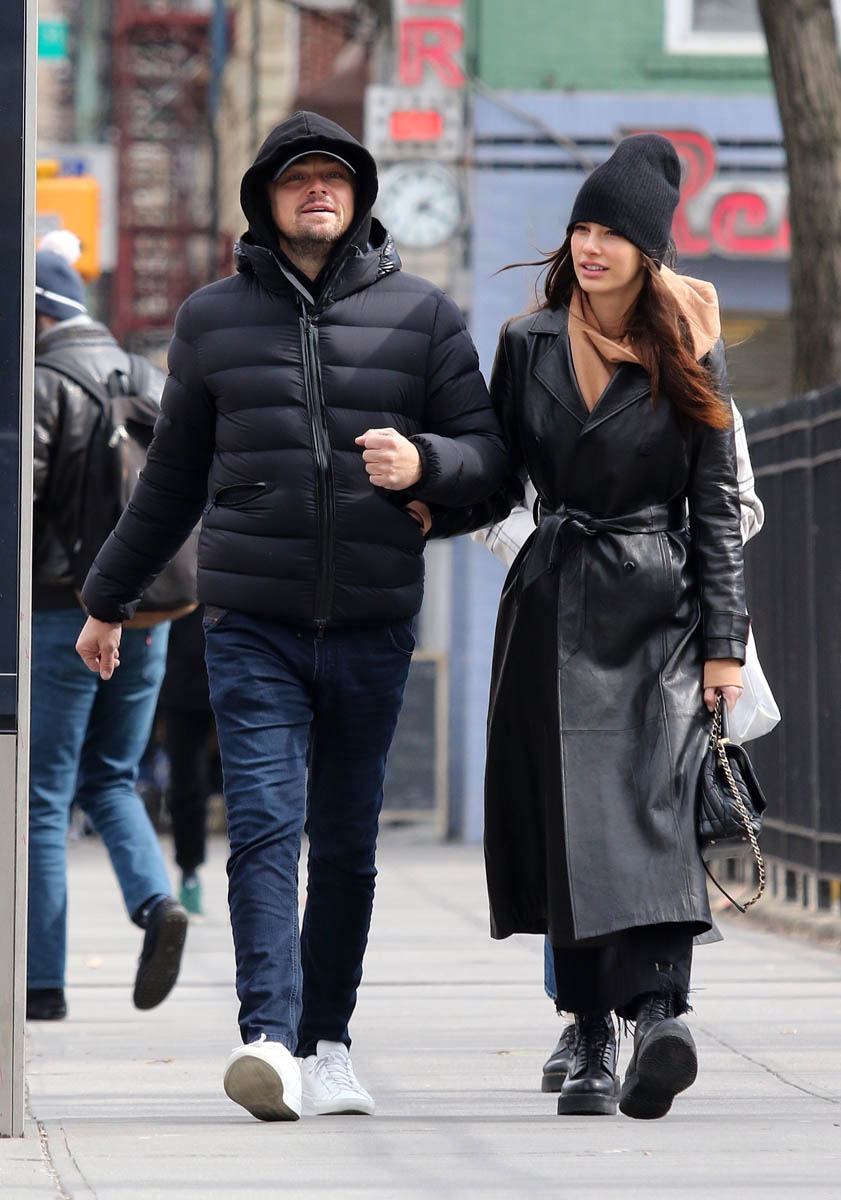 He and Camila were in New York this weekend, and not running from the paps while out for a walk. Have you noticed that Leo’s lack of reluctance about being photographed with Camila has kind of been in step with the jokes made about his romantic age preference? The whole thing about him not dating anyone – actually, not even just “anyone”, but any model – over 25 has become much more well-known about him over the last couple of years, complete with a graphic. And then he showed up front row at the Oscars with Camila sitting beside him. Coincidence or conspiracy?