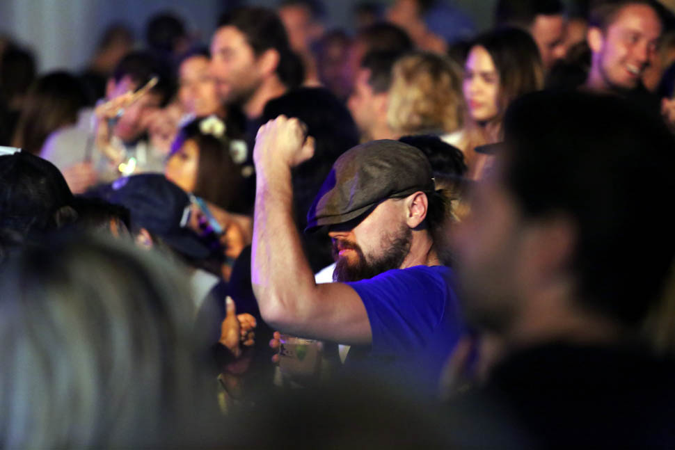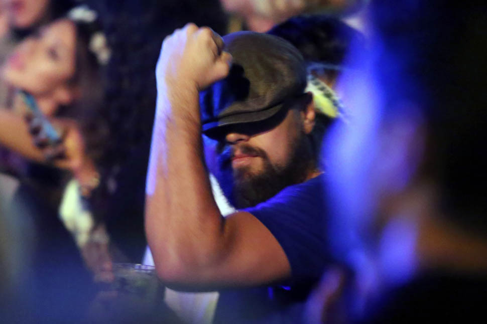 Here he is, Leo, on Saturday night, fist-pumping to the music. Sadly he didn’t show us any of that awesome choreography from last year. But remember, Coachella is multiple weekends now. Maybe he’s saving it.