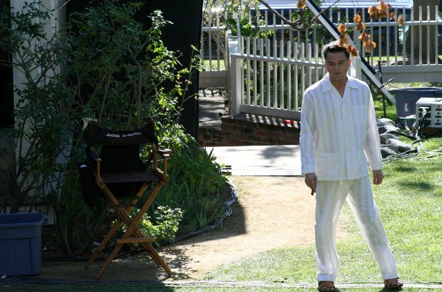 Leo on set: pyjamas to tuxedo