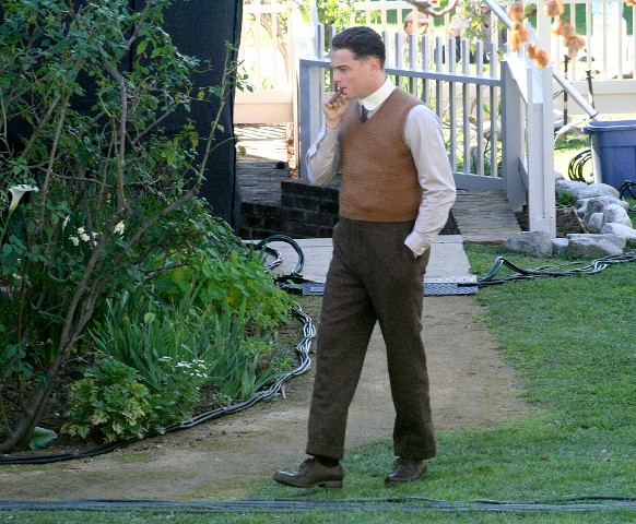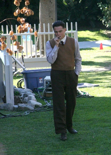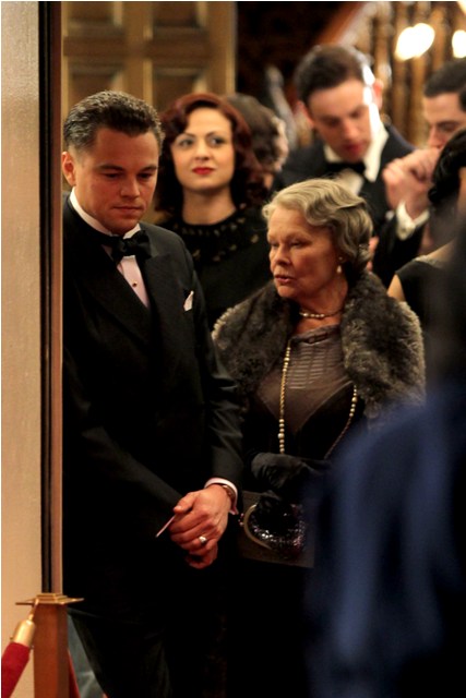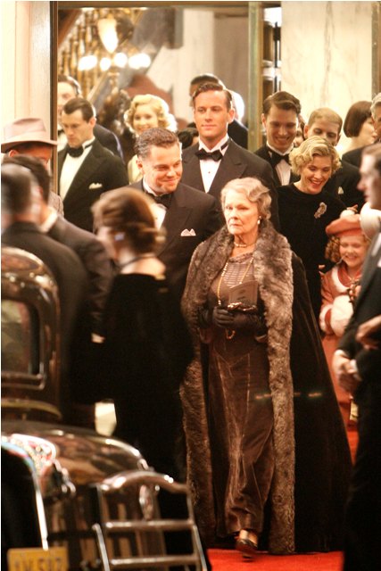 Clint Eastwood is known for motoring through a shoot. He’s nothing if not efficient. And so Leonardo DiCaprio was on set yesterday filming in several costumes, first at the house, in pyjamas, and then at night with Dame Judi Dench and Armie Hammer, who plays his lover, all dressed up for a black tie affair.