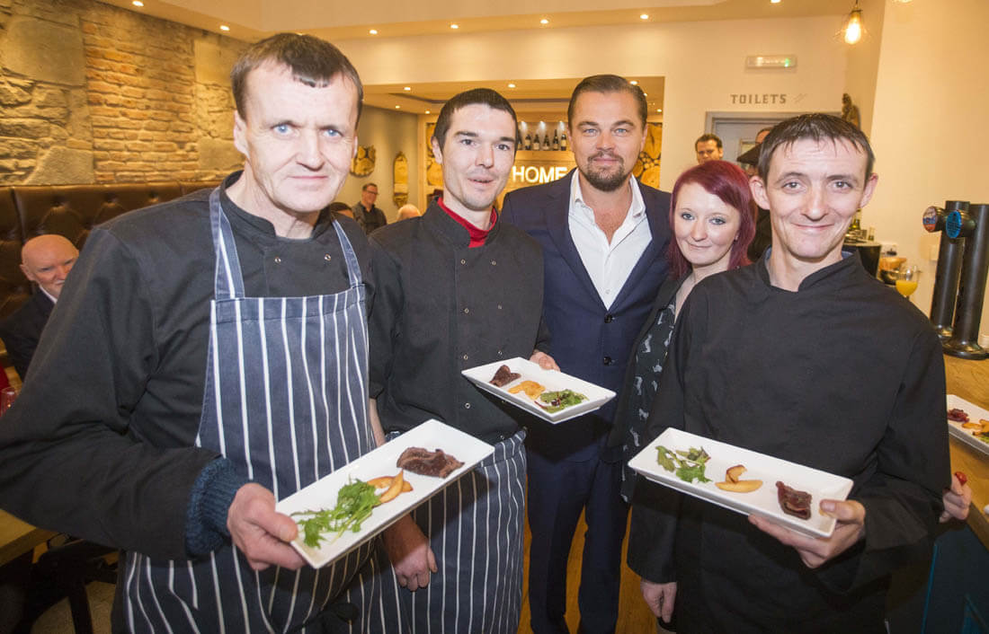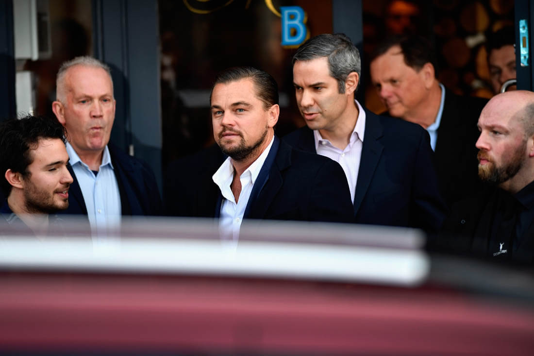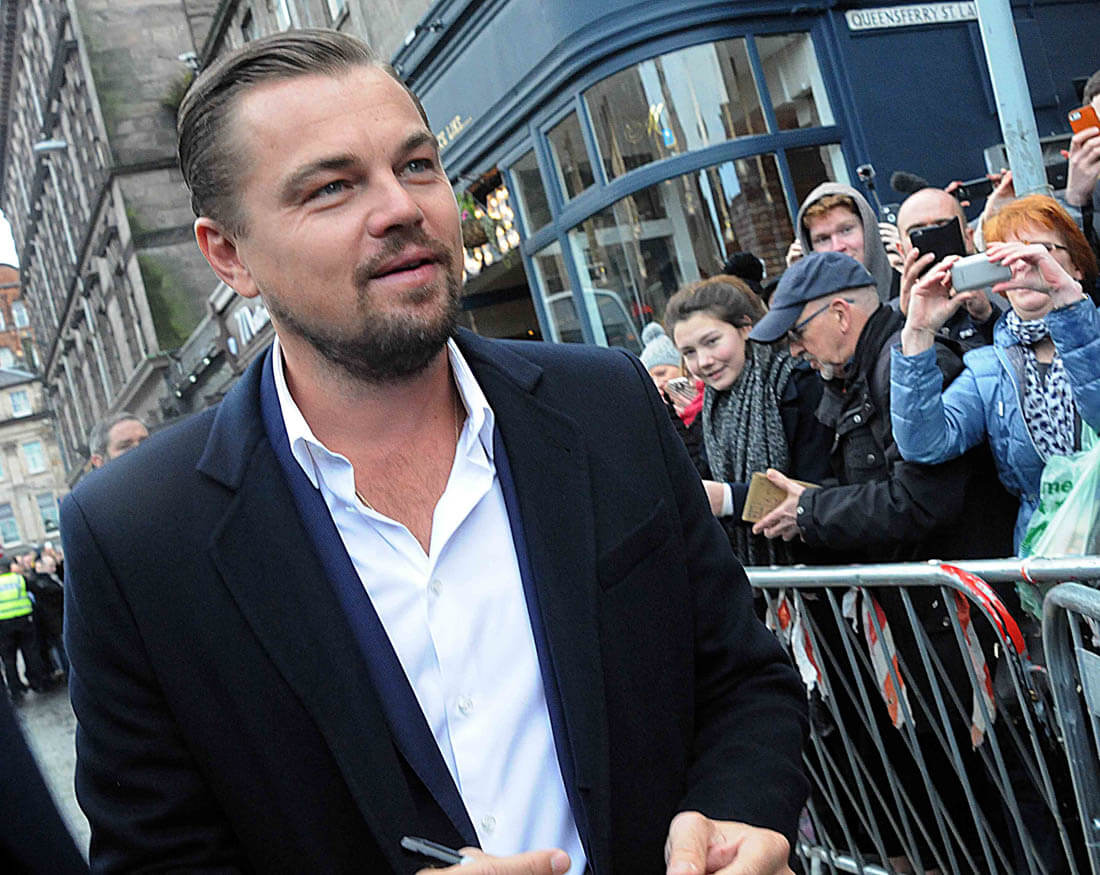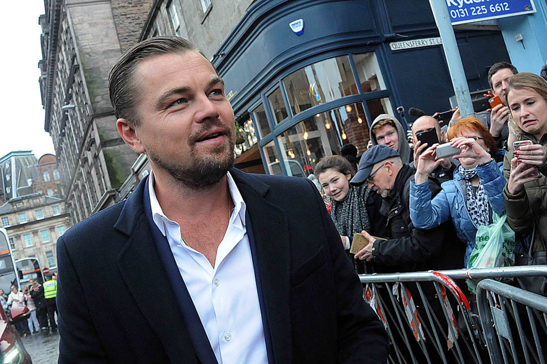 Leonardo DiCaprio is in Edinburgh this week to speak at the Scottish Business Awards. He also stopped in at a café called Home, which supports members of the local homeless community and “provides training and employment programmes for members of the Social Bite Academy, a four-year paid course for homeless people”. George Clooney did this last year. A huge crowd gathered outside to see him. Unlike George, Leo did not speak to media. I’m telling you, he needs a script, he is not an off-the-cuff kind of guy.