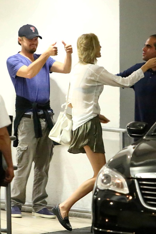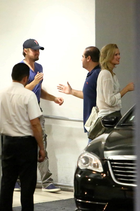 Here they are after dinner in Beverly Hills this week. Lukas Haas was with them too, of course. I don’t feel like paying for pictures of Lukas though which I suppose sums up his situation. Anyway, Leo doesn’t know he’s being shot here which is why he’s not hiding in a trash bin. As you can see, he’s in great spirits. And why not? It’s been a summer of fun, having premiered Gatsby at Cannes and not in Australia, and partying ever since.