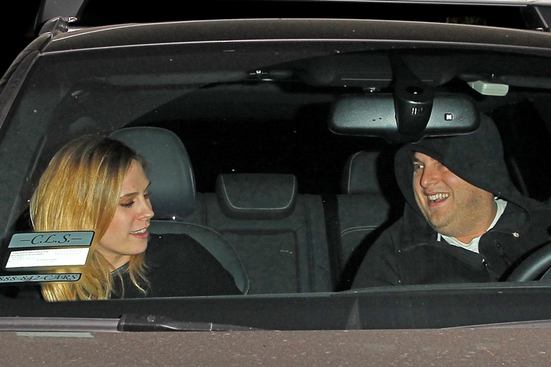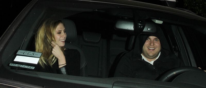 Jonah Hill, 2X Oscar nominee and friend of Marty, Leo, and Brange, went out for dinner last night in LA with his girlfriend. Meanwhile, his best friend Leonardo DiCaprio is in St Barts. He was seen there on Sunday with several friends and Toni Garrn, who is not pictured in this photo set.