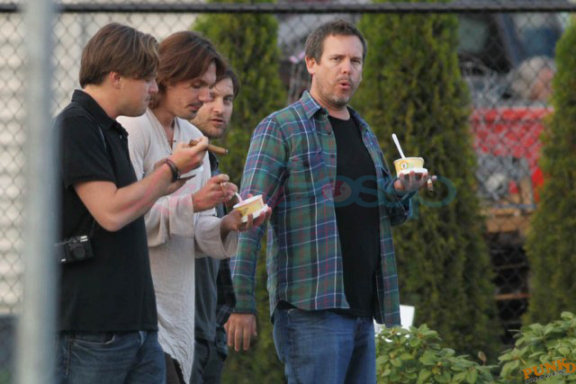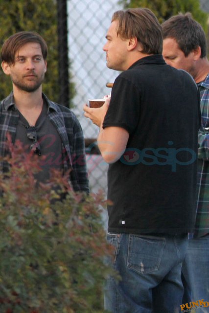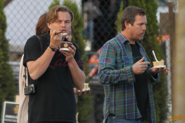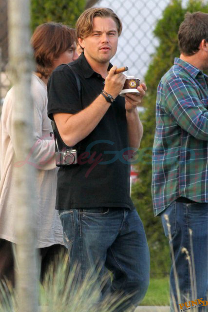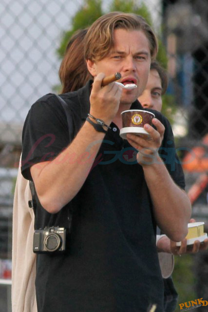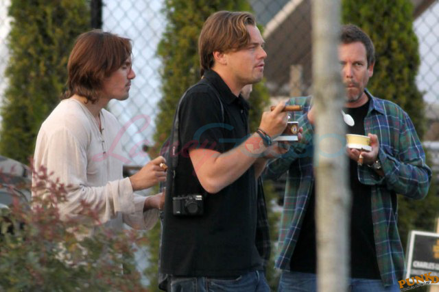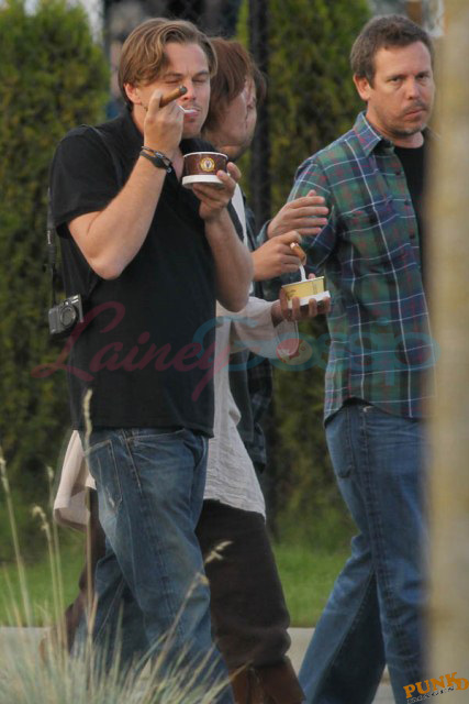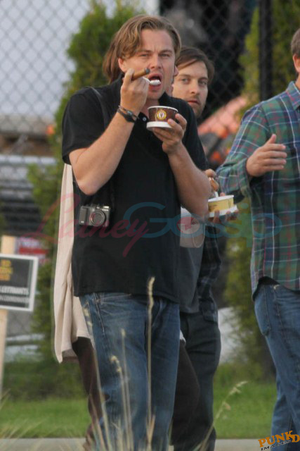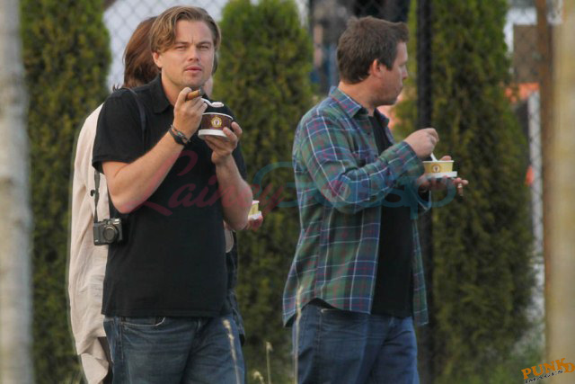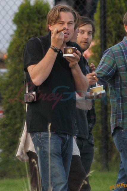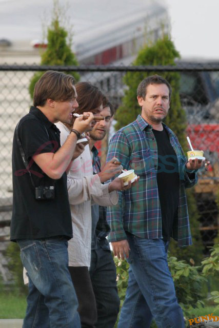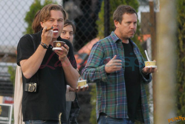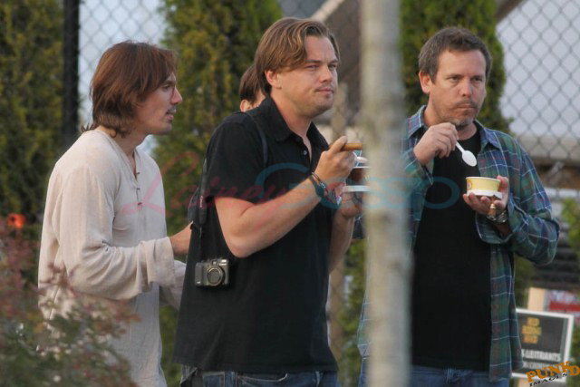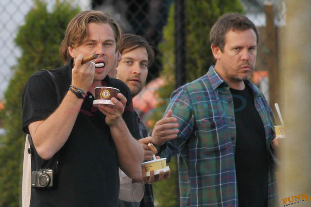 It’s old school – Leonardo DiCaprio was in Vancouver yesterday with Tobey Maguire and Lukas Haas who is working on Red Riding Hood (starring Amanda Seyfried), a film that Leo’s company is producing. These are the OGs, they’ve been friends for almost 20 years, maybe more, and it looks like a trip without the ladies, an afternoon of ice cream and cigars, and a camera to commemorate the occasion – why do I love that it’s hanging off Leo’s shoulder?