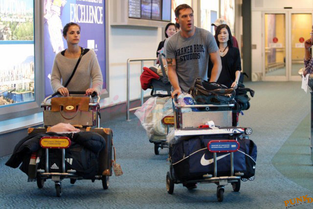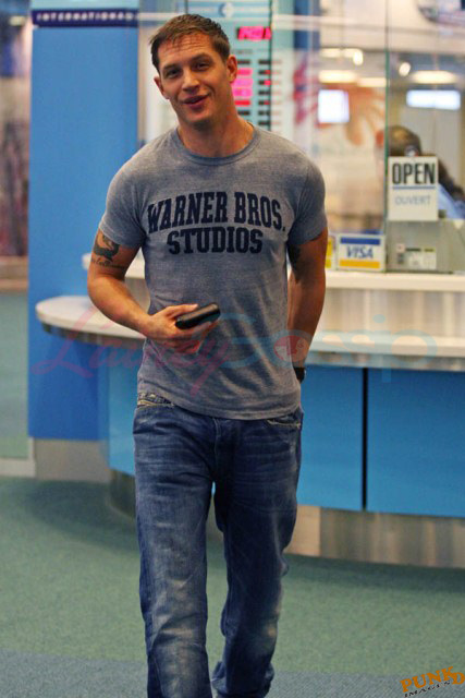 Hardy arrived earlier on Friday with his fiancée Charlotte Riley. I love a man in a simple grey tee. And his jeans fit so well too. No question, I’m with Tom > Chris Pine. Pine also flew into Vancouver this weekend to begin work on their movie This Means War in which the two assassins go head to head over the affections of Reese Witherspoon.