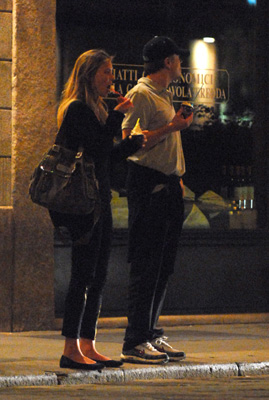 What will I be doing this weekend? Seeing The Departed and letting my bitch out. If it"s bad it means they"ve raped Infernal Affairs, if it"s good it means idiots everywhere will attribute it everywhere but right. Always a bitter bitch I am. And what will Leonardo DiCaprio be doing this weekend? Hopefully investing in a new pair of pants. Like, I know it"s casual and all…but tapered sweats? TAPERED SWEATS??? So help me Goddess from the side it looks like tapered sweats. Not that he was ever very loin-worthy to begin, especially not when dressed down and yet… it"s jarring, you know? It"s a little MC Hammer too and that"s still a bad thing, yes? So here"s Leo with Bar, sharing affection, sharing ice cream, very sweet in that I-wonder-if-she-can-actually-carry-on-a-conversation kind of way. Or maybe conversation isn"t important? Maybe talking doesn"t mean much to modelisers? How very celebral of him... Photo source