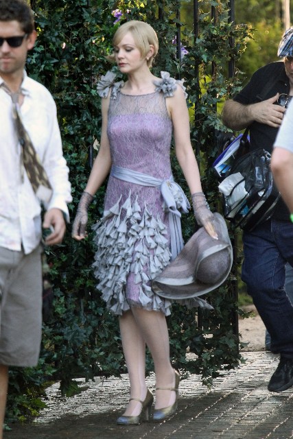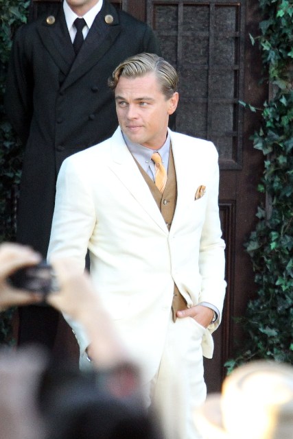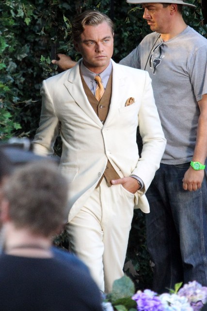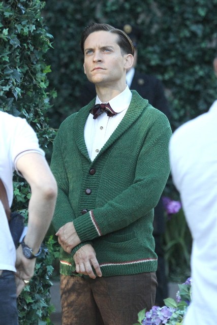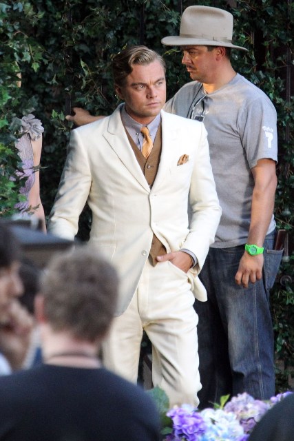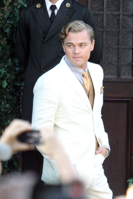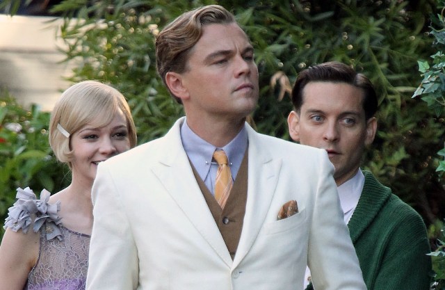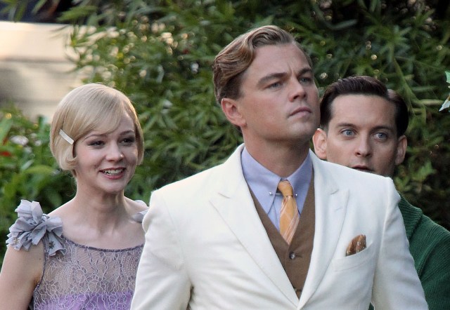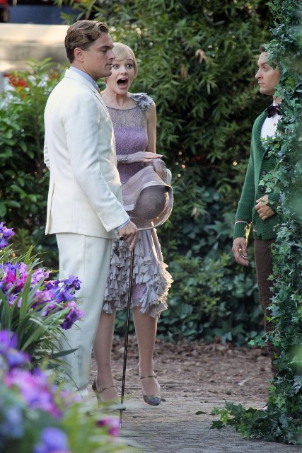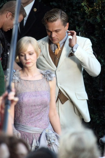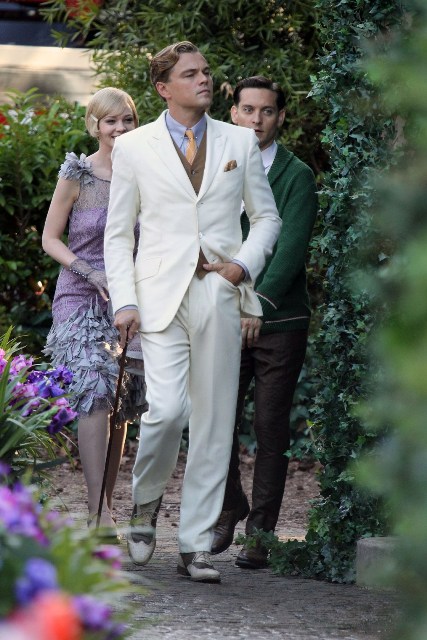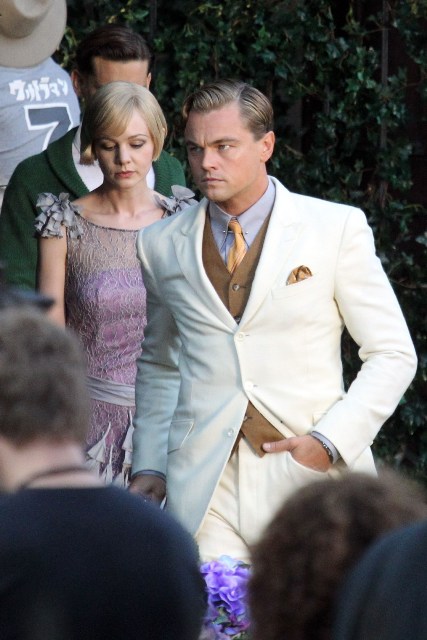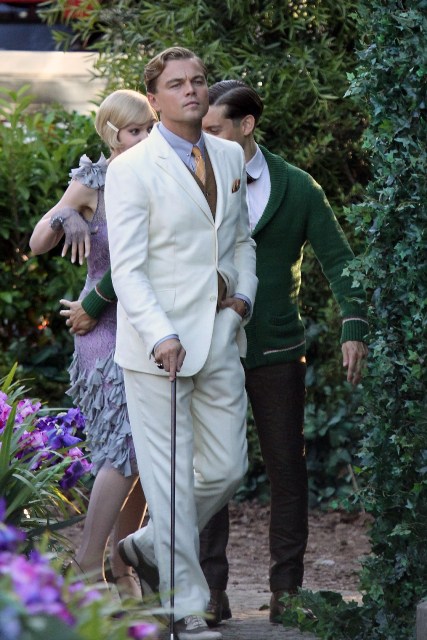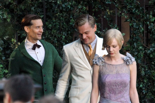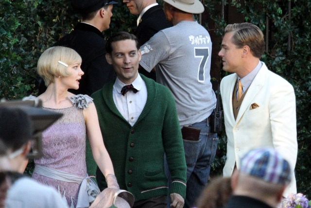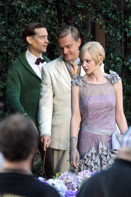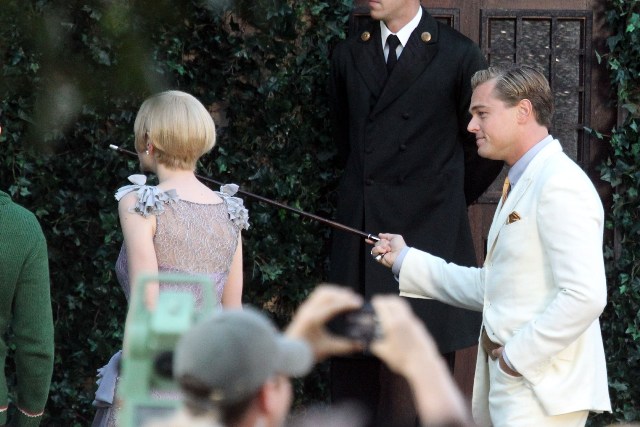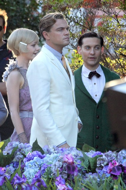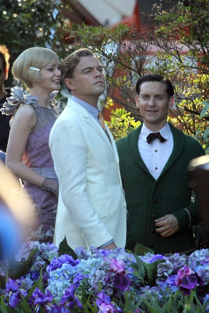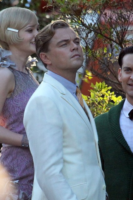 These are the best shots yet from the set of The Great Gatsby in Sydney of Leonardo DiCaprio, Tobey Maguire, and Carey Mulligan as Jay, Nick, and Daisy directed by Baz Luhrmann...in 3D. I looooooove Carey’s hair so much. And Leo’s little wave, what do you think of Leo’s little wave?