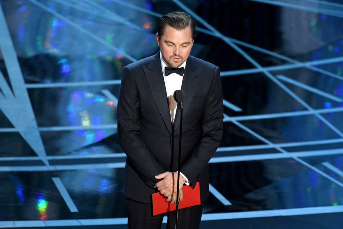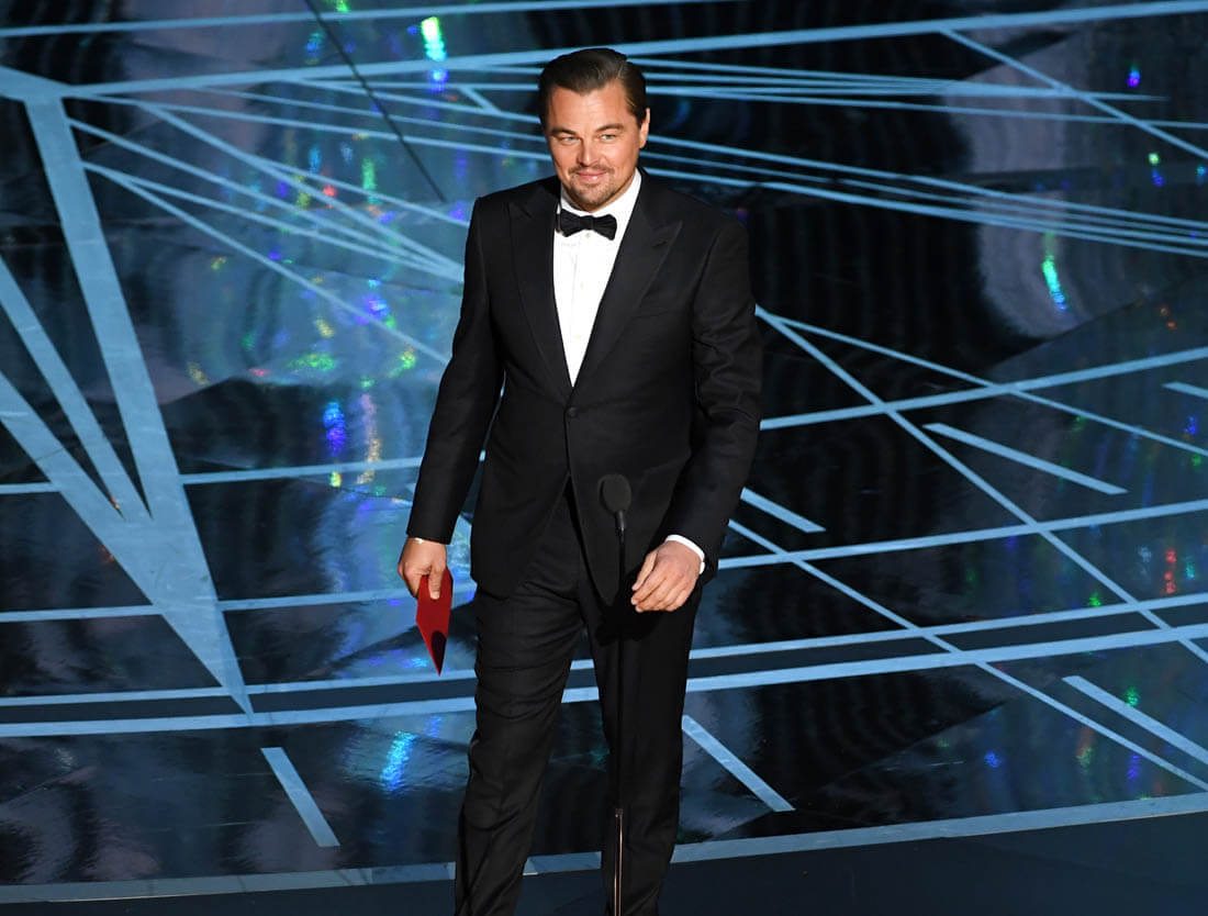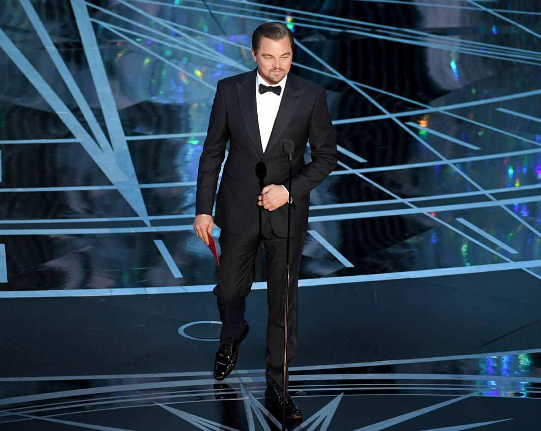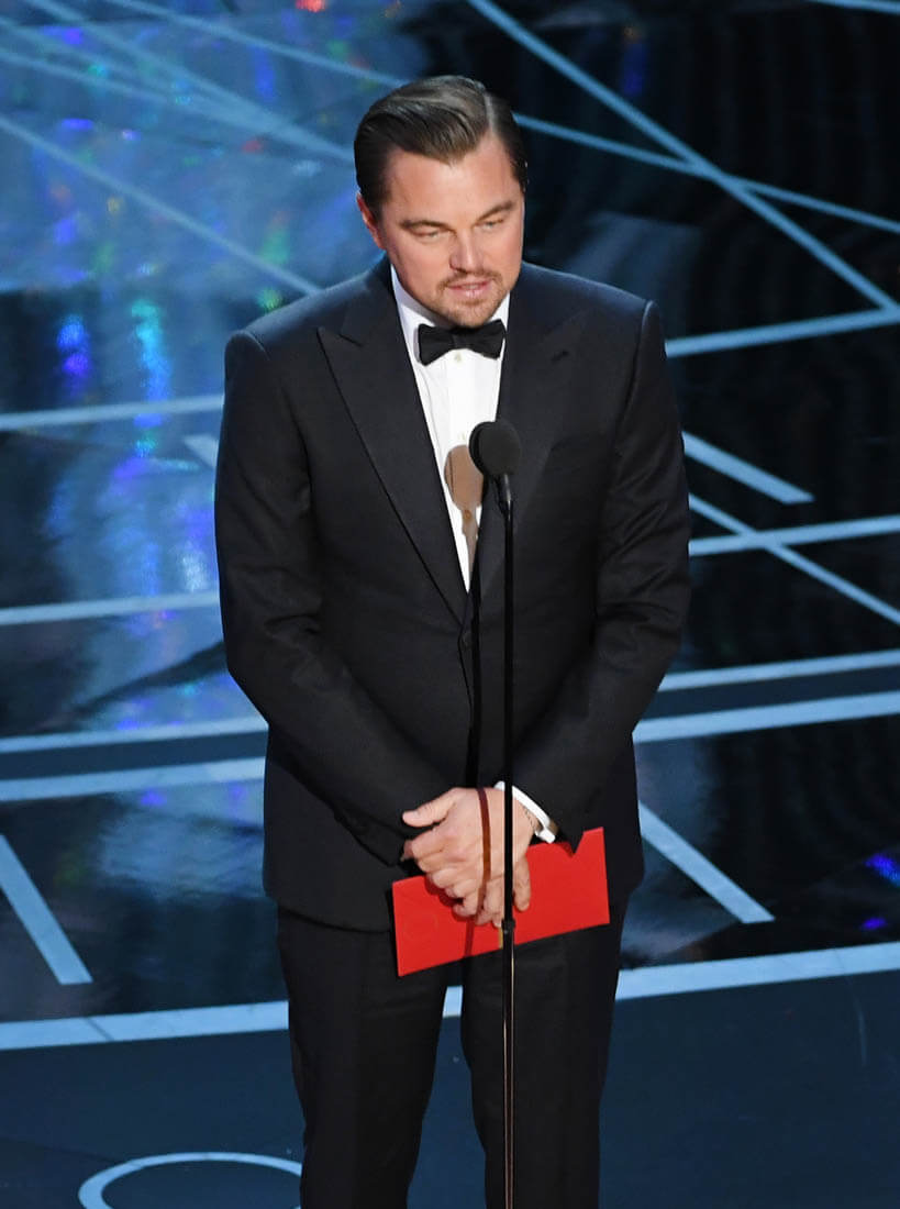 So, since exactly a year ago, Leo has been Academy Award winner, Leonardo DiCaprio. And …can you see the difference it made in his presenting style? Leo’s presented at the Oscars before. But this was his first time presenting as an Oscar winner. He came out of the wings like a peacock. That was a STRUT, a smirking strut, the smirk of a man now imbued with the power to anoint another. And he is getting OFF on that.