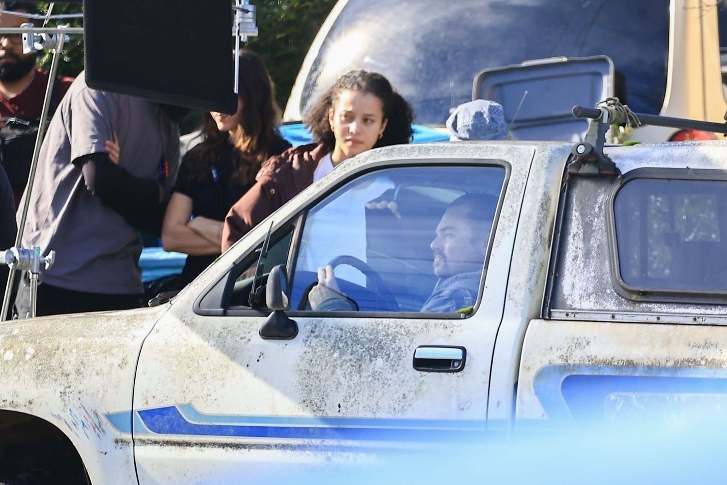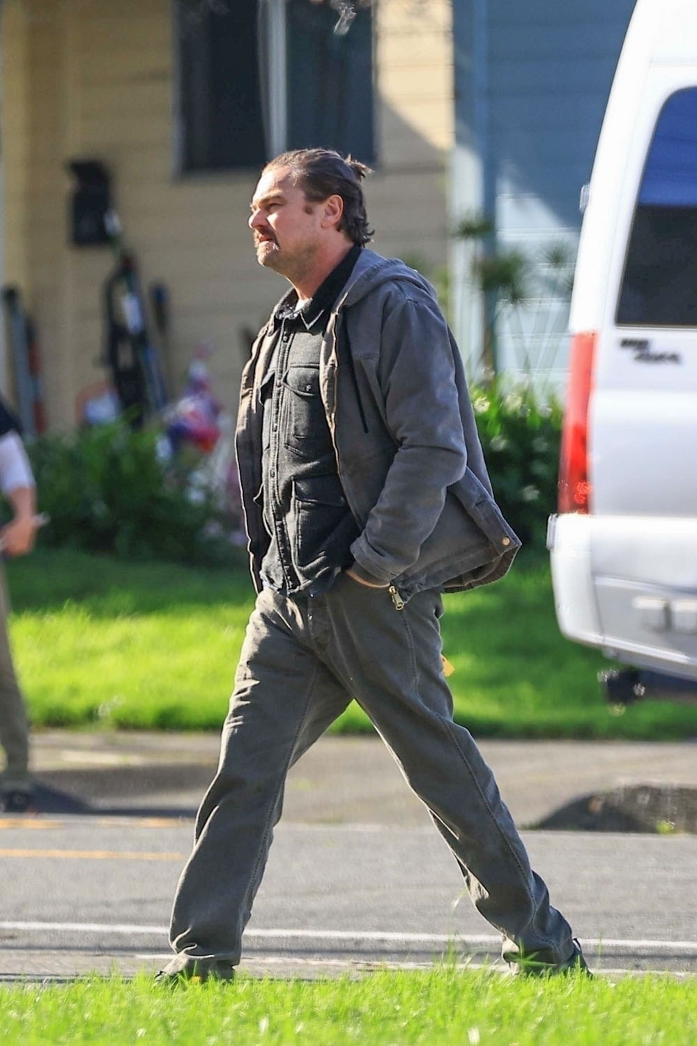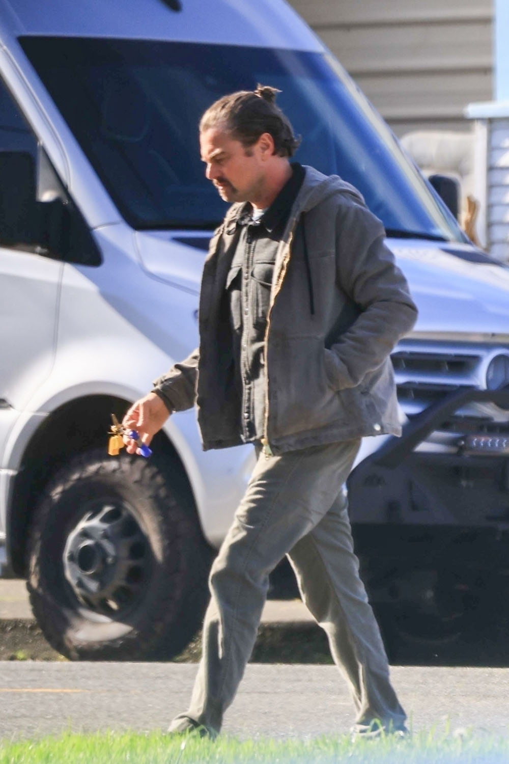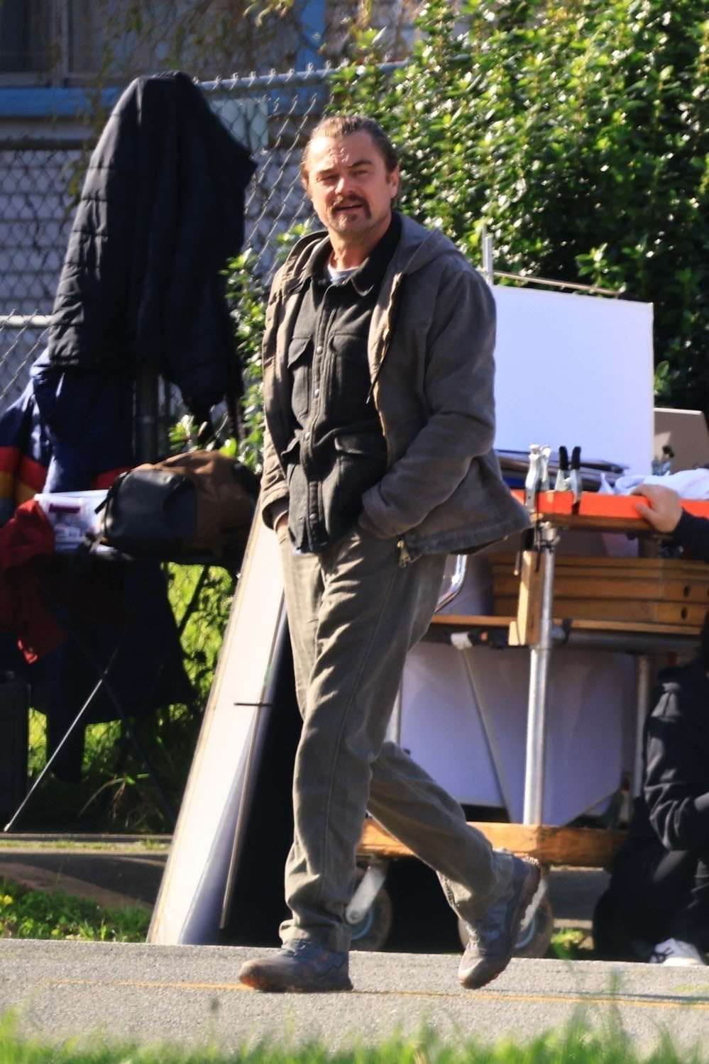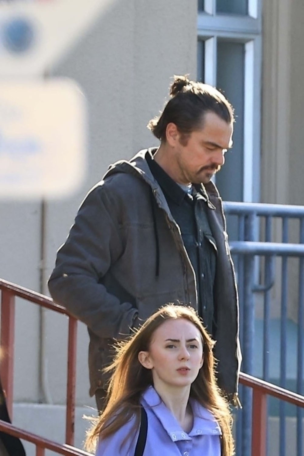 Filming for Paul Thomas Anderson’s new film is underway in Los Angeles, and this week Leonardo DiCaprio was seen on set rocking a man bun and regrettable facial hair. The film is referred to as “BC Project” and the plot is unknown, but from the facial hair, man bun, and sh-tty car he’s driving in character, we can deduce that Leo is playing a scummy guy.