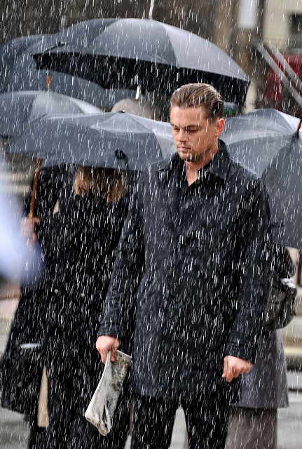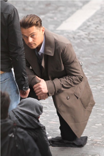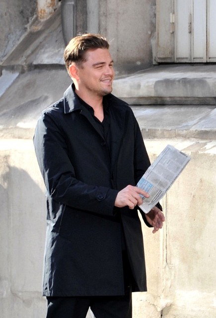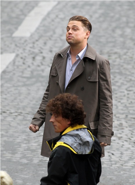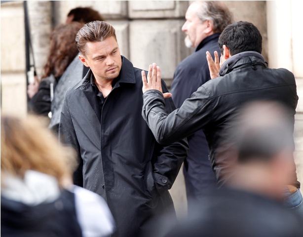 Anyway, here’s Leonardo DiCaprio today in Paris shooting an ad for Mobile Guangdong OPPO for cell phone users in China. Apparently his paycheque for the gig is $5 million. That’s a lot of cigars.