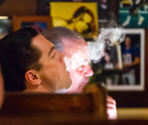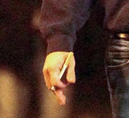 Sienna Miller smokes e-cigs -- click here to see. Leonardo DiCaprio smokes e-cigs. He’s been smoking them for months. Maybe years? Now I’m obsessed with what this means. If you switch from real cigarettes to e-cigarettes, does that actually count as quitting? Here’s Leo with his e-cig on set in New York the other day. He’s smoking inside a restaurant. I was at a restaurant last night and asked for permission to smoke my e-cig because the women at the table next to us were smokers and every time they came back to their table, they’d waft the sweetness back in with them. So I asked the bartender who had to ask the owner and they huddled over it and in the end, unfortunately, it was not allowed, because optically, even though it’s just mist, it would seem off-side. Leo doesn’t have this problem.