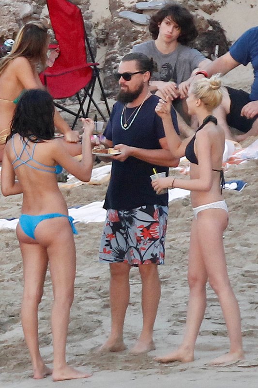 Here he is this on the weekend relaxing on the beach, surrounded by beautiful young women. How this is different from any other time of year I’m not sure. “Like a supermodel’s vagina, let’s give a warm welcome to Leonardo DiCaprio.” THANK YOU, Tina Fey. I can’t wait until next Sunday.