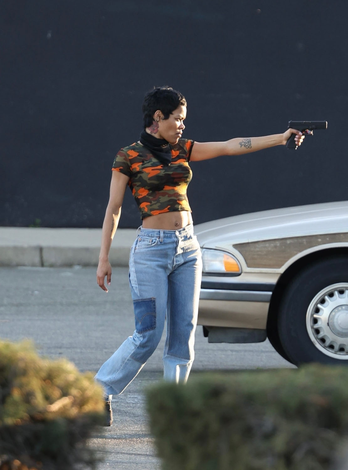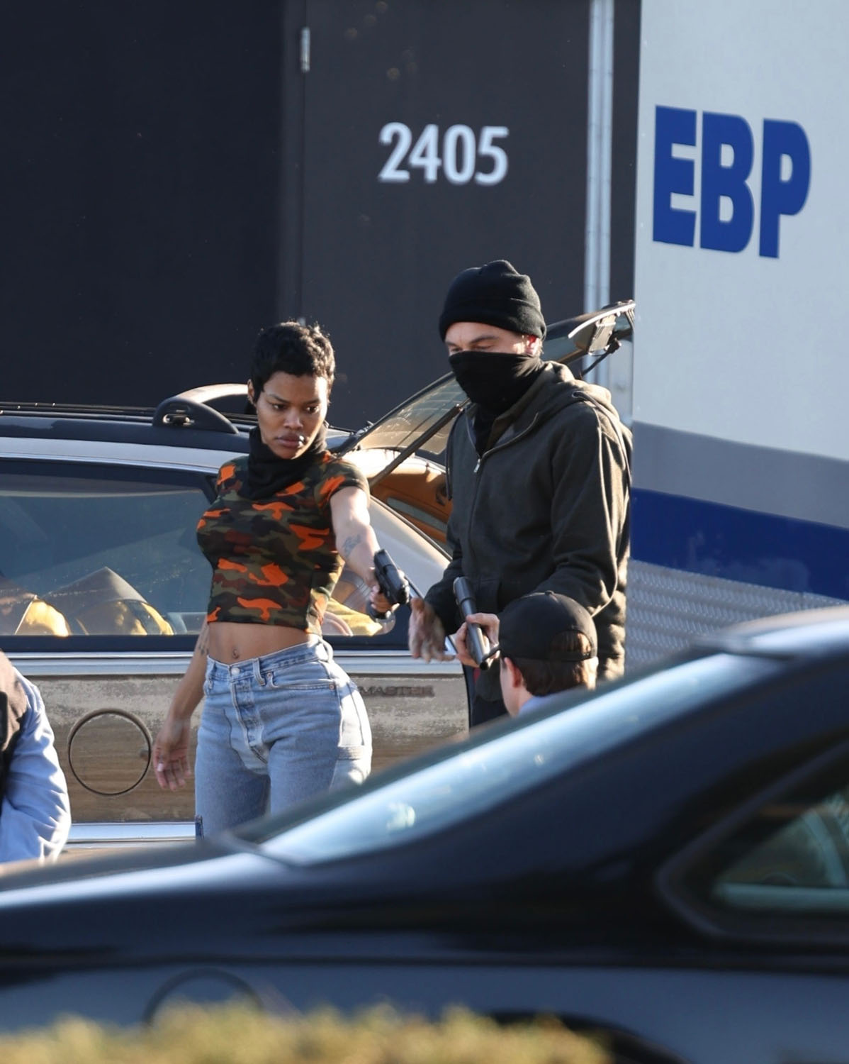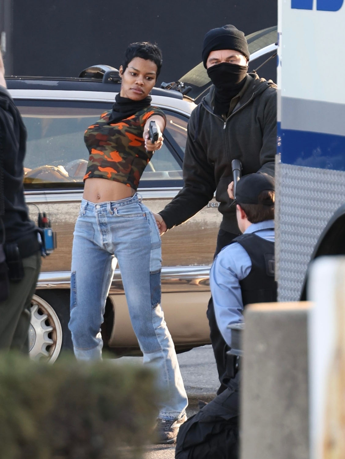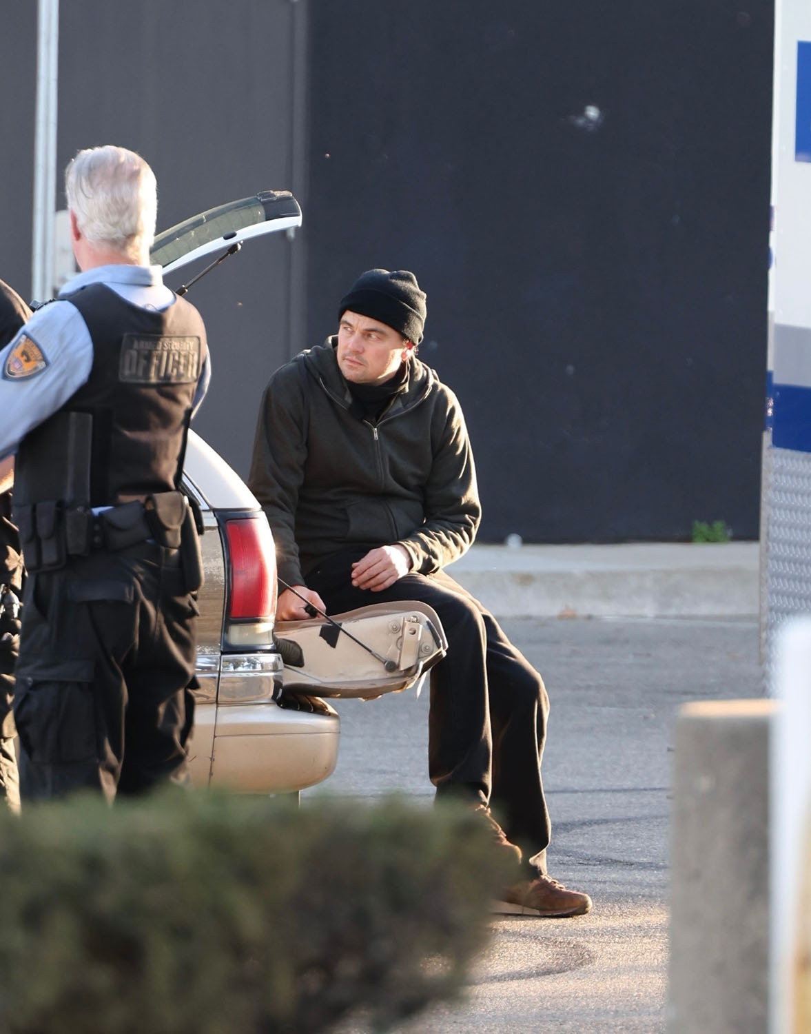 Here he is with Teyana filming a scene where they appear to be in the middle of a robbery and confronted by the cops. At one point, and this made me laugh, Leo apparently slaps Teyana on the ass suggesting that their characters are romantically linked. Or that his character would like to be romantically linked with hers. And now I’m so interested to see how that works on screen and whether or not I buy it.