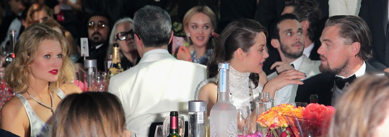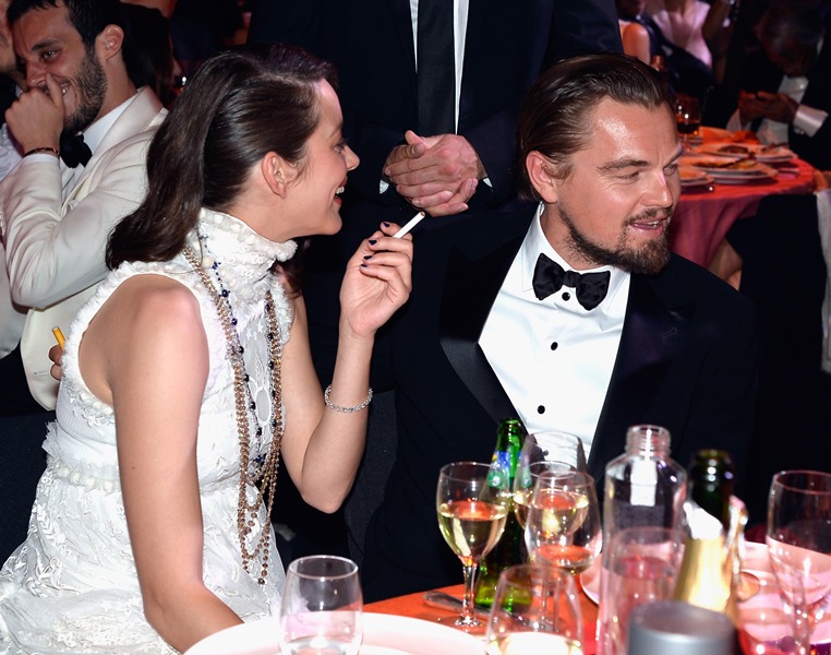 Leonardo DiCaprio was at the AMFAR gala in Cannes last night. And even though he had a model rubbing up against him at a club earlier this week – click here for a refresher – Toni Garrn was there too, with him, seated at his table. I guess that’s the deal when you accept the honour of being his bonafide. You have to understand that sometimes hot women are going to grind their asses on his crotch and it has to be OK.