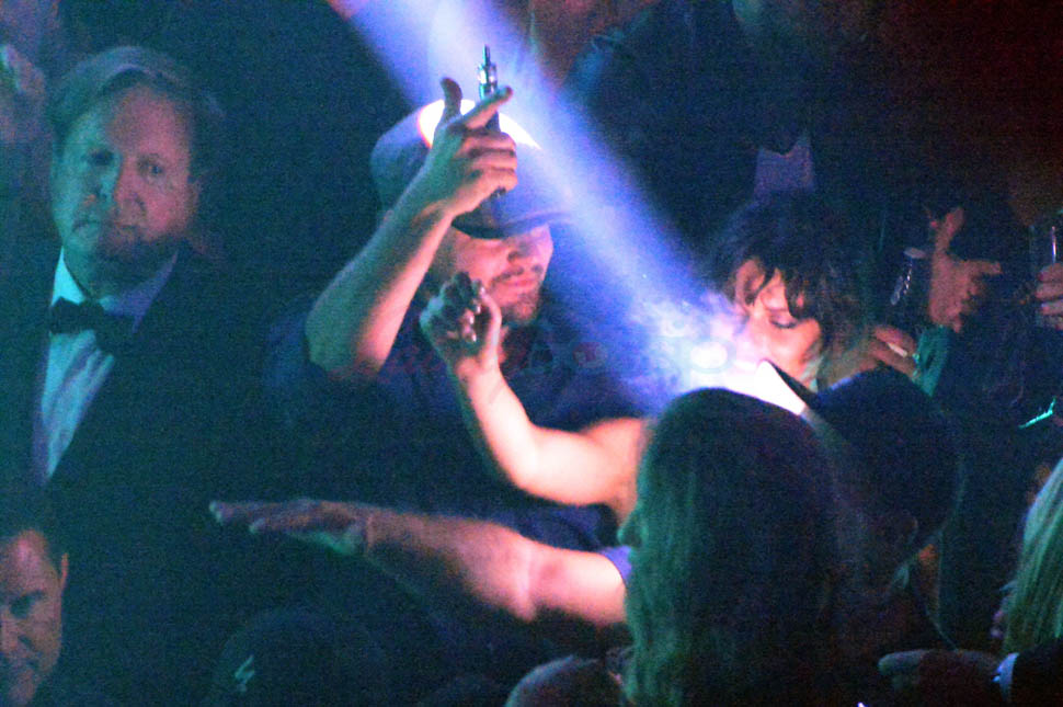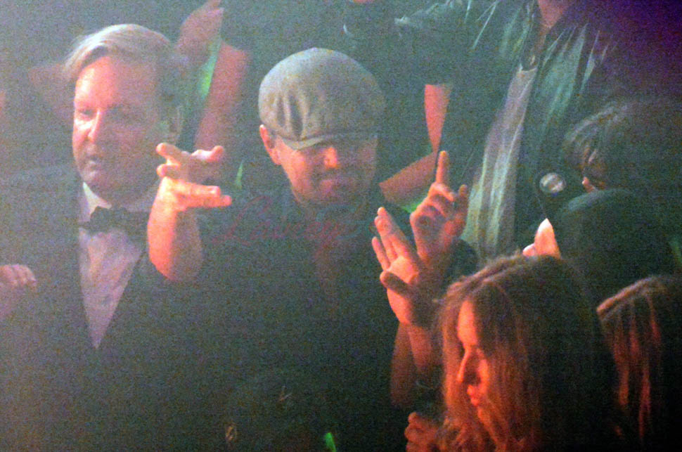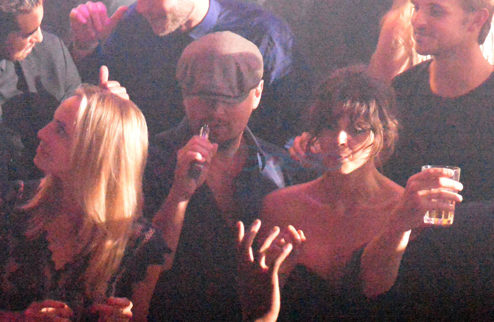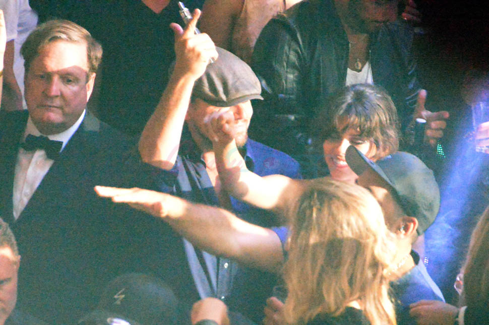 The other night the model was Georgia Fowler who clearly managed to keep Leo’s attention – with her hand on his face, with whatever scintillating anecdotes she was sharing with him in the middle of the dance floor, with his dance floor fingers because he knows the beat.