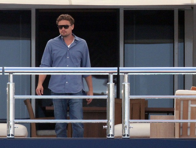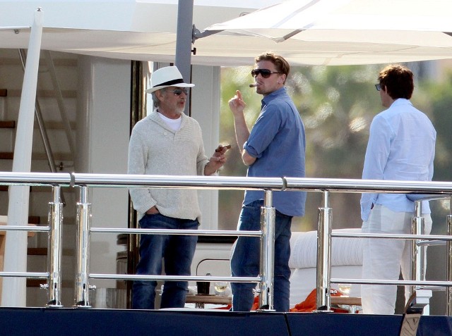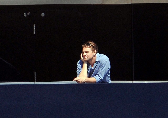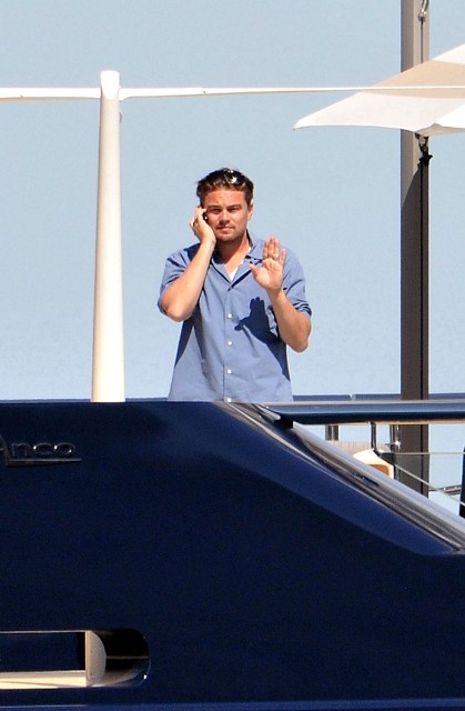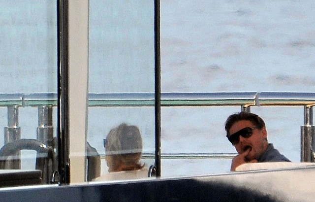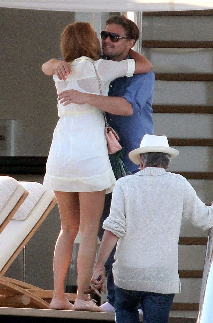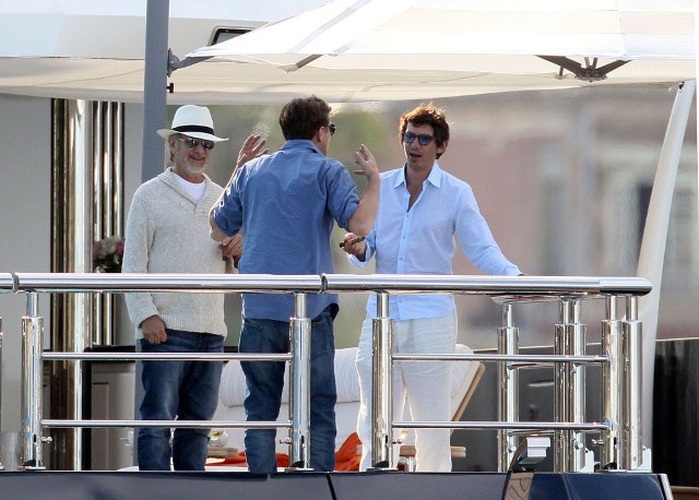 Leo and his boys were with Steven Spielberg and Kate Capshaw. Then Blake showed up. They all greeted each other. She also hugged Lukas Haas. Gave him a friendly kiss on the mouth. Then Spielberg gave her a tour of the boat.